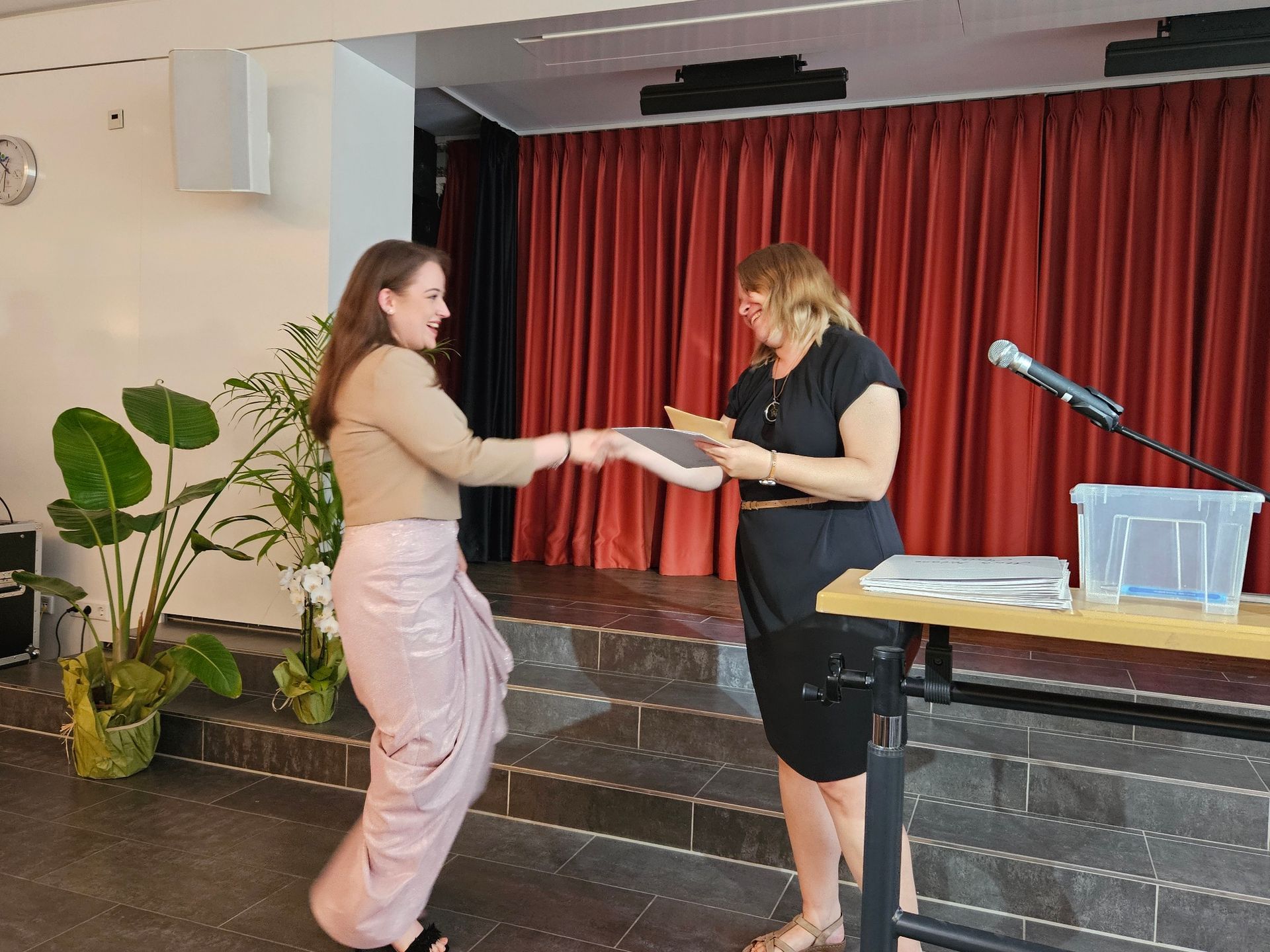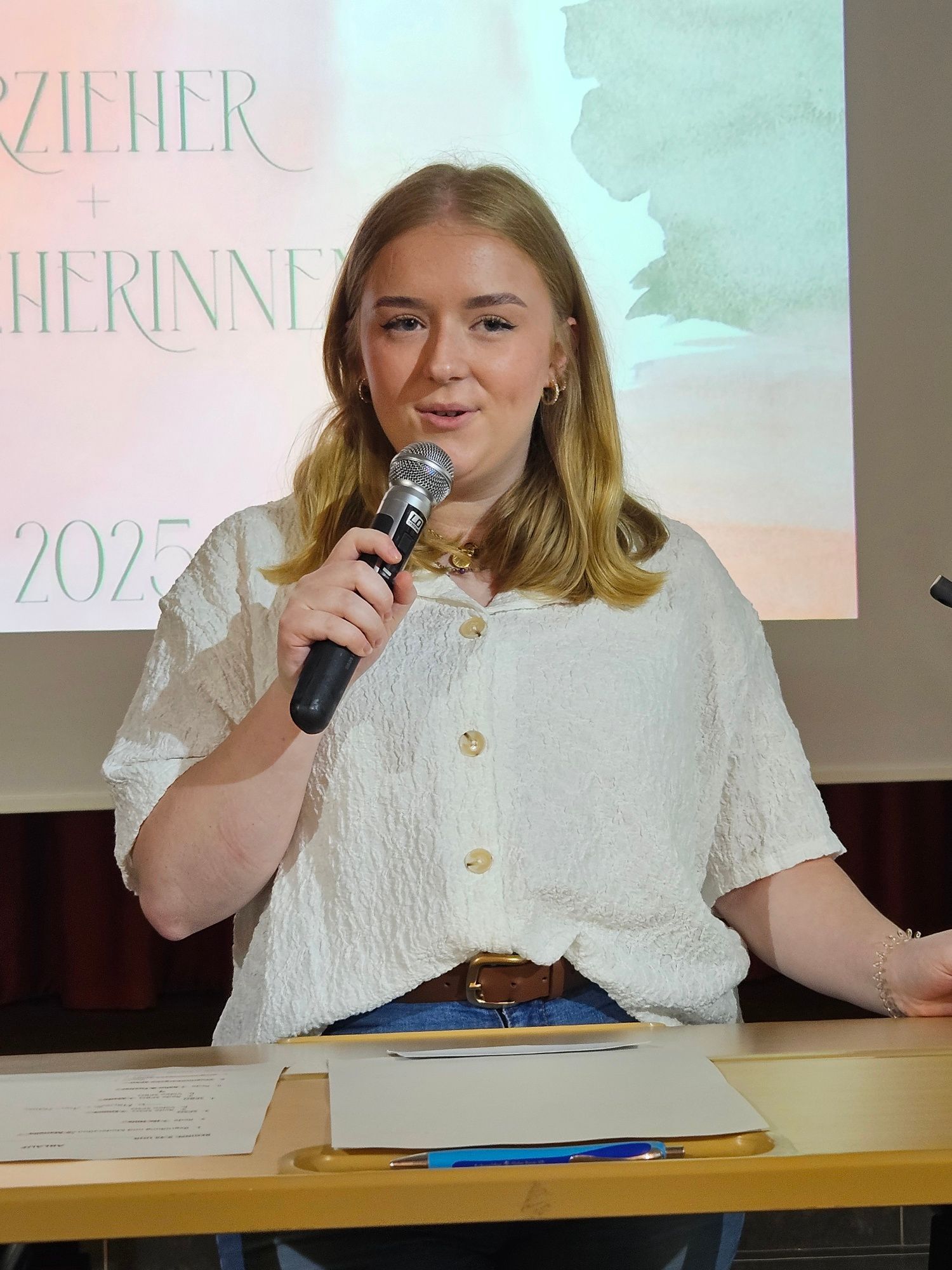 Am Freitag, 27.06.2025 wurdendie Studierenden der Fachschule Sozialpädagogik feierlich verabschiedet. Die Anwesenden der gemeinsamen Abschlussfeier der SPSO und SPBO wurden zunächst von Mariella Becks aus der SPSO begrüßt, die auch die gesamte Moderation der Feier übernahm.