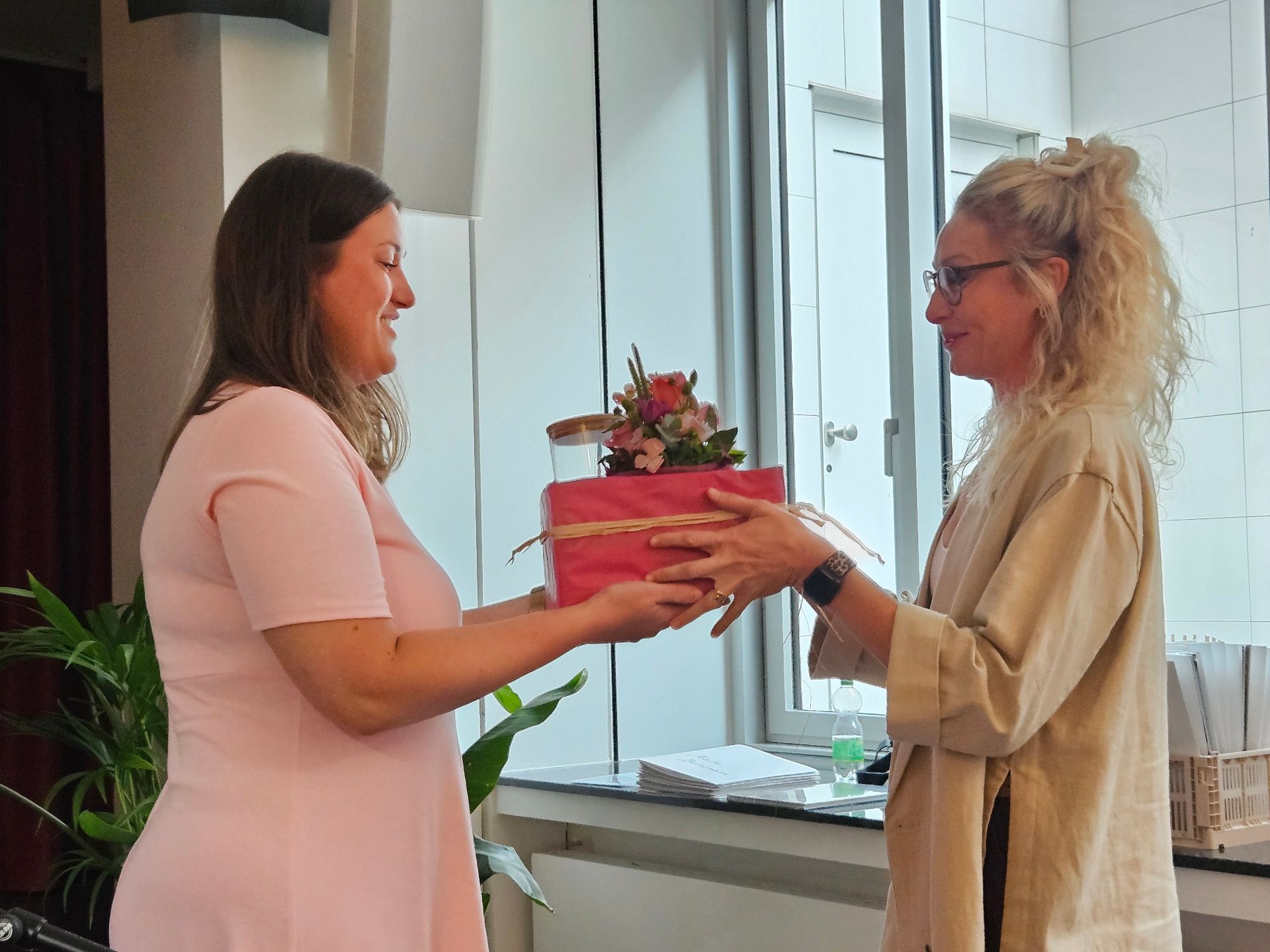 ... und bedankte sich danach bei Frau Fischer für ihr Engagement mit einem Geschenk.