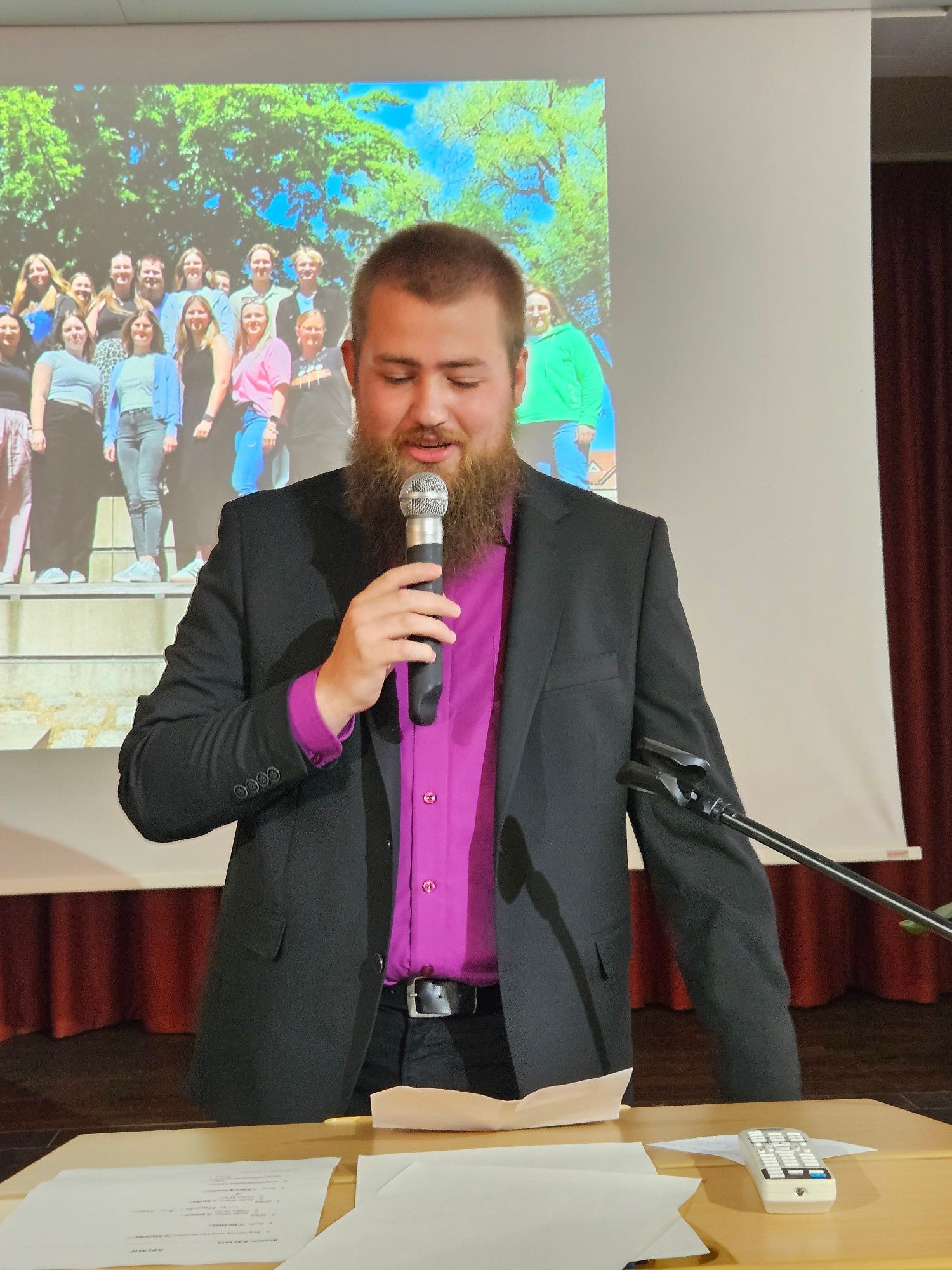 Es folgte die Rede von Malte Bertelmann als Vertreter der SPBO. In seiner Rede ging er auf die Ereignisse der letzten Jahre ein. Prägend war die Zusammenlegung der ursprünglich zwei Klassen und die dabei entstandene Herausforderung als eine Klassengemeinschaft zusammenzuwachen. Ein insgesamt positiver Prozess, der jedoch genug Gesprächsstoff für eine Abschlussrede lieferte.