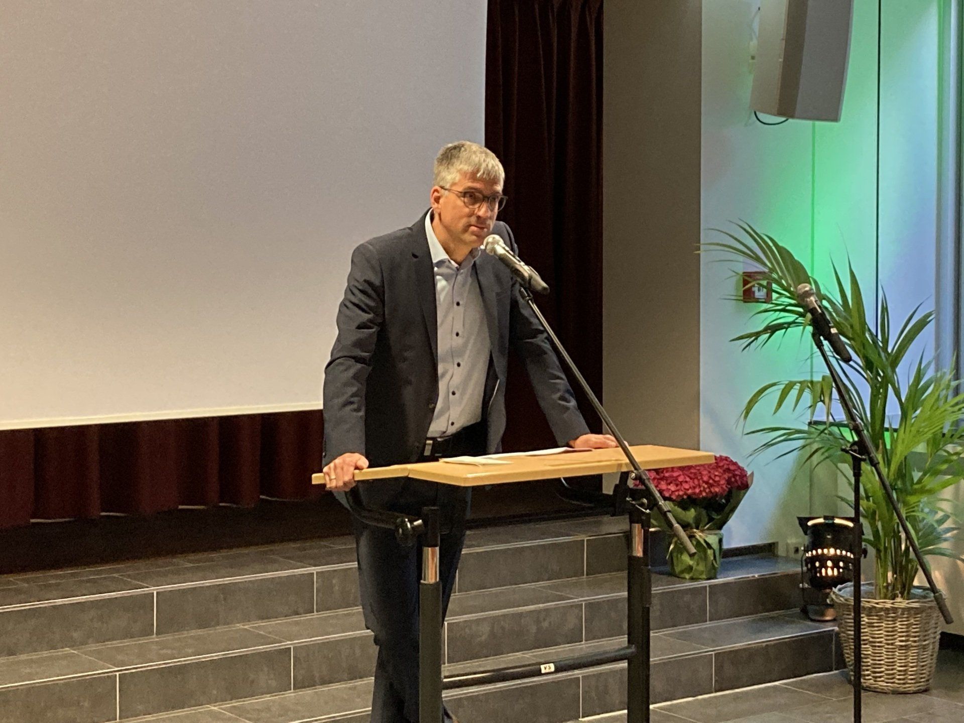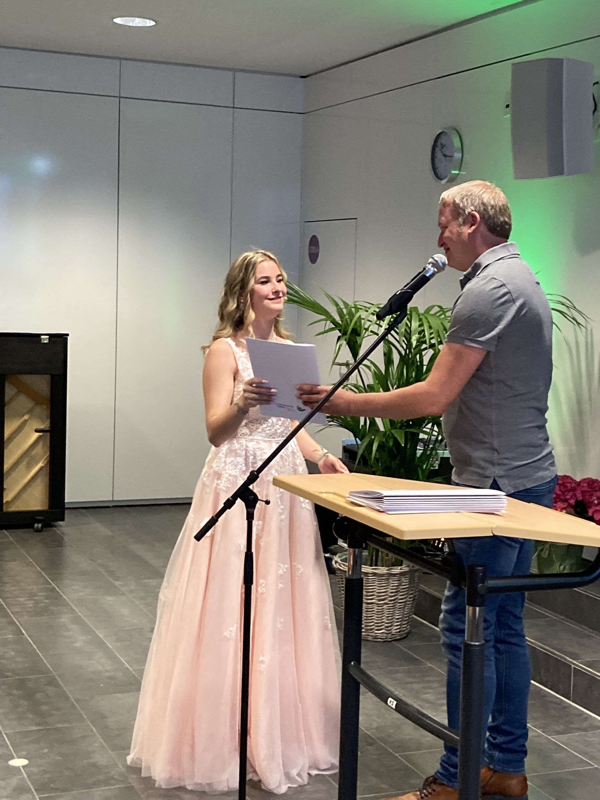 Zunächste begrüßte Herr Borgert stellvertretend im Namen der Schulleitung alle anwesenden Gäste. In seiner Rede beschrieb Herr Borgert die letzten zwei Jahre als sehr ereignisreich. Er äußerte die stille Hoffnung, dass die Schulzeit der Absolventinnen und Absolventen nicht nur durch die Pandemie, die sowohl schulisch, aber auch privat sehr viele Einschränkungen mitgebracht hatte, geprägt worden sei. Herr Borgert rief die Anwesenden dazu auf, ihren Blick auf das Positive zu richten, welches sie in den letzten Jahren erreicht haben. Er dankte sowohl den Klassenlehrern als auch den Eltern, die er auch dafür beglückwünschte, dass ihre Kinder jetzt auf eigenen Beinen stehen. Die Pandemie hätte sie dabei ein Stück weit selbständiger und krisenfester werden lassen. Dies wäre eine entscheidender Vorteil für die zukünftige Arbeit mit Menschen im Bereich Gesundheit und Soziales.