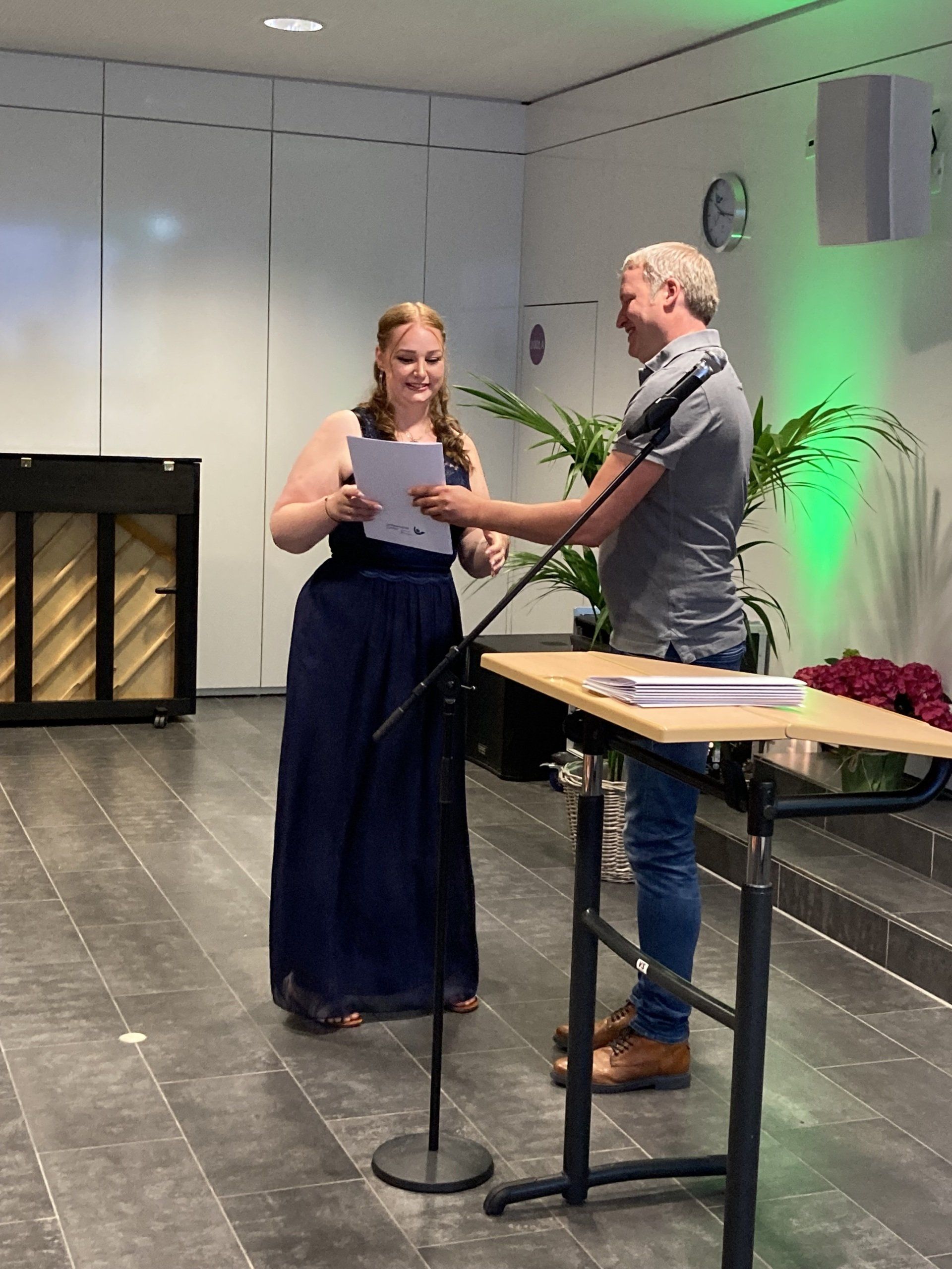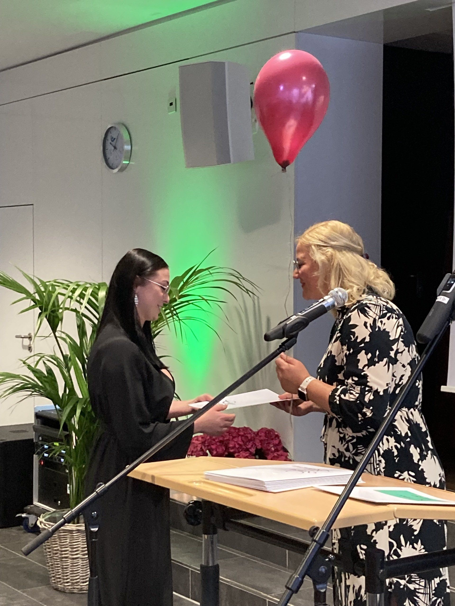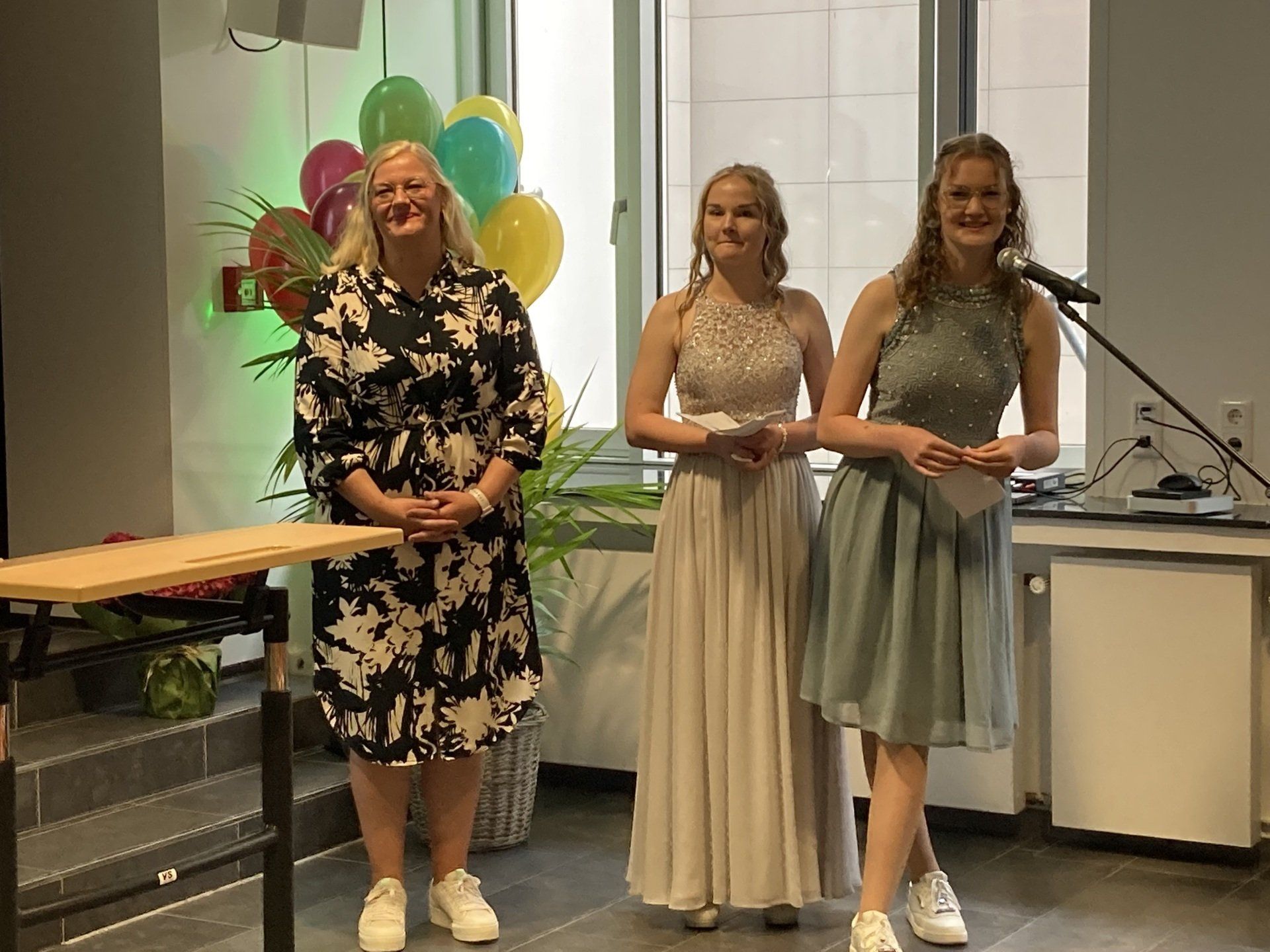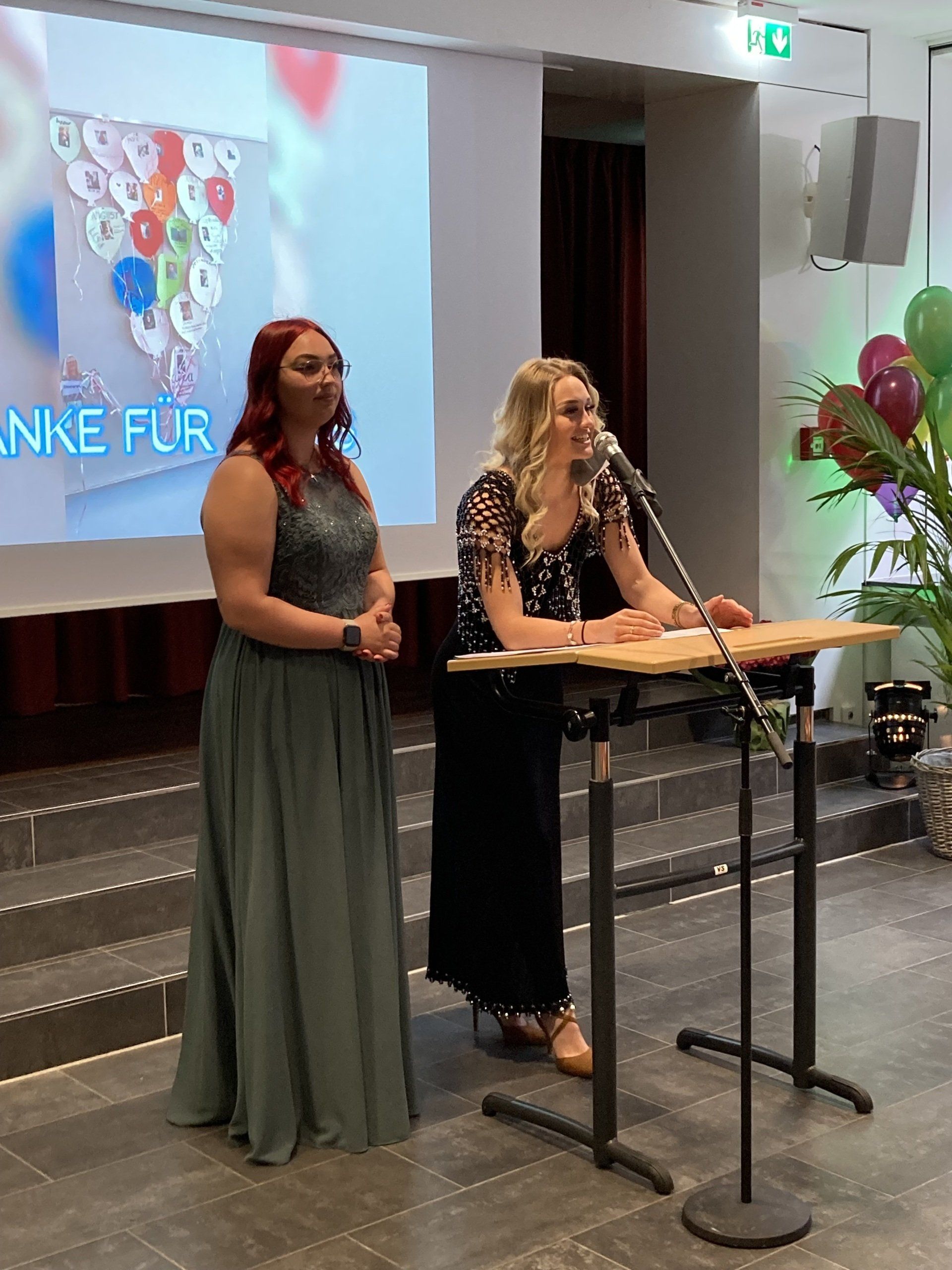 Die beiden Vertreterinnen der FOS 12b betonten die sehr gute Unterstützung durch ihre Eltern und ihren Klassenlehrer Herrn Emmerich während der Schulzeit. Im Rückblick konnten sie sagen, dass sie dadurch einige schulische und private Probleme besser meistern konnten.