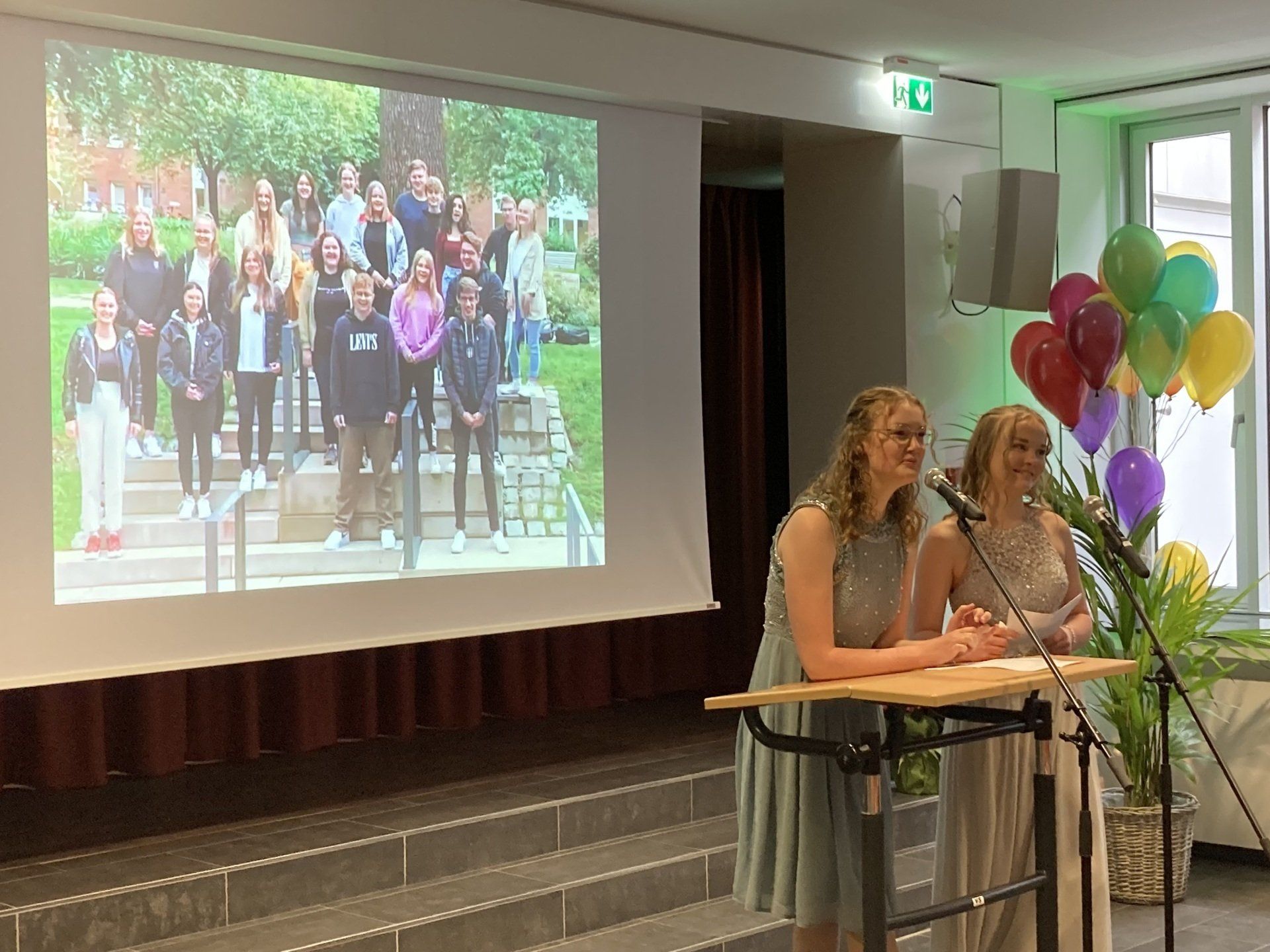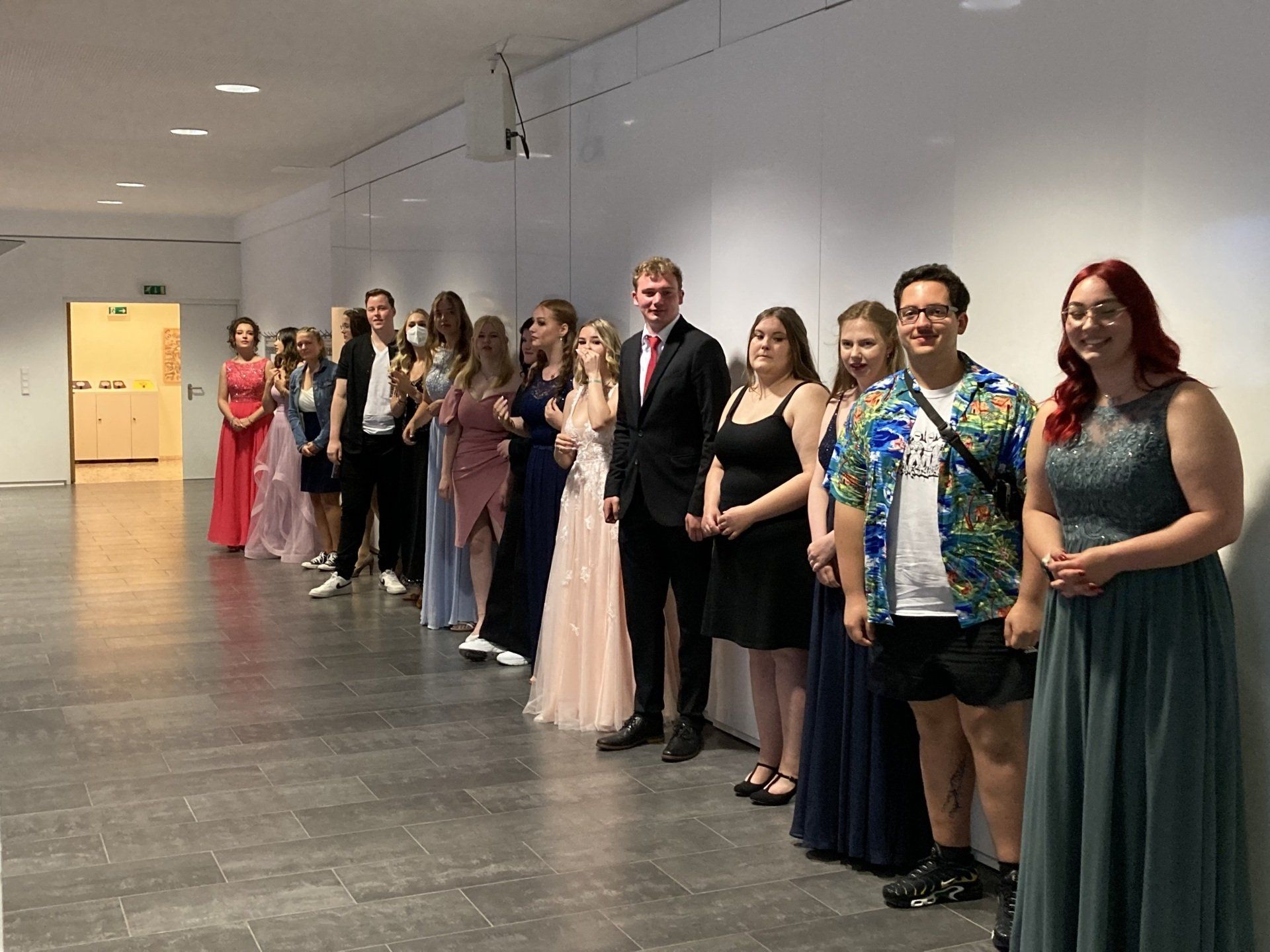 In ihrer Rede wählten die beiden Klassenlehrer*innen Frau Meis-Kunze (FOS 12a) und Herr Emmerich (FOs 12b) das Bild von Matrosen, die sich im Laufe ihrer Schulzeit zu Vollmatrosen entwickelt hätten und nun bereit wären, die Leinen los zu lassen und aufs offene Meer zu segeln.