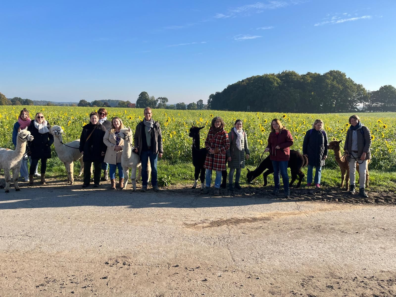 Nach einem gemeinsamen Mittagessen in Olfen, schloss sich der letzte Programmpunkt für den Mitarbeiter:inne-Ausflug nahtlos an. Diesmal erkundete man mit allen Mitarbeiter:innen gemeinsam den Grimpinger Hof.
