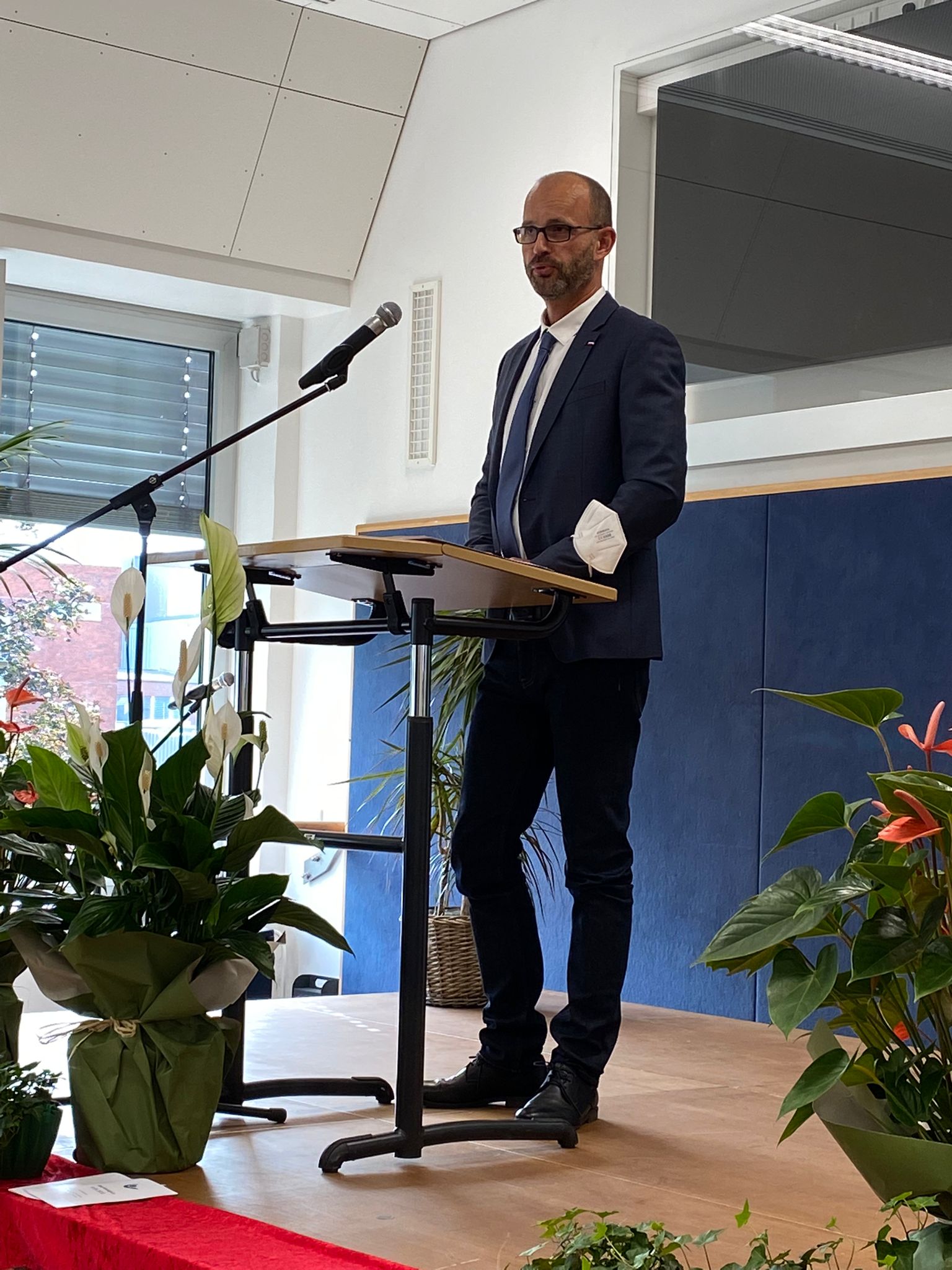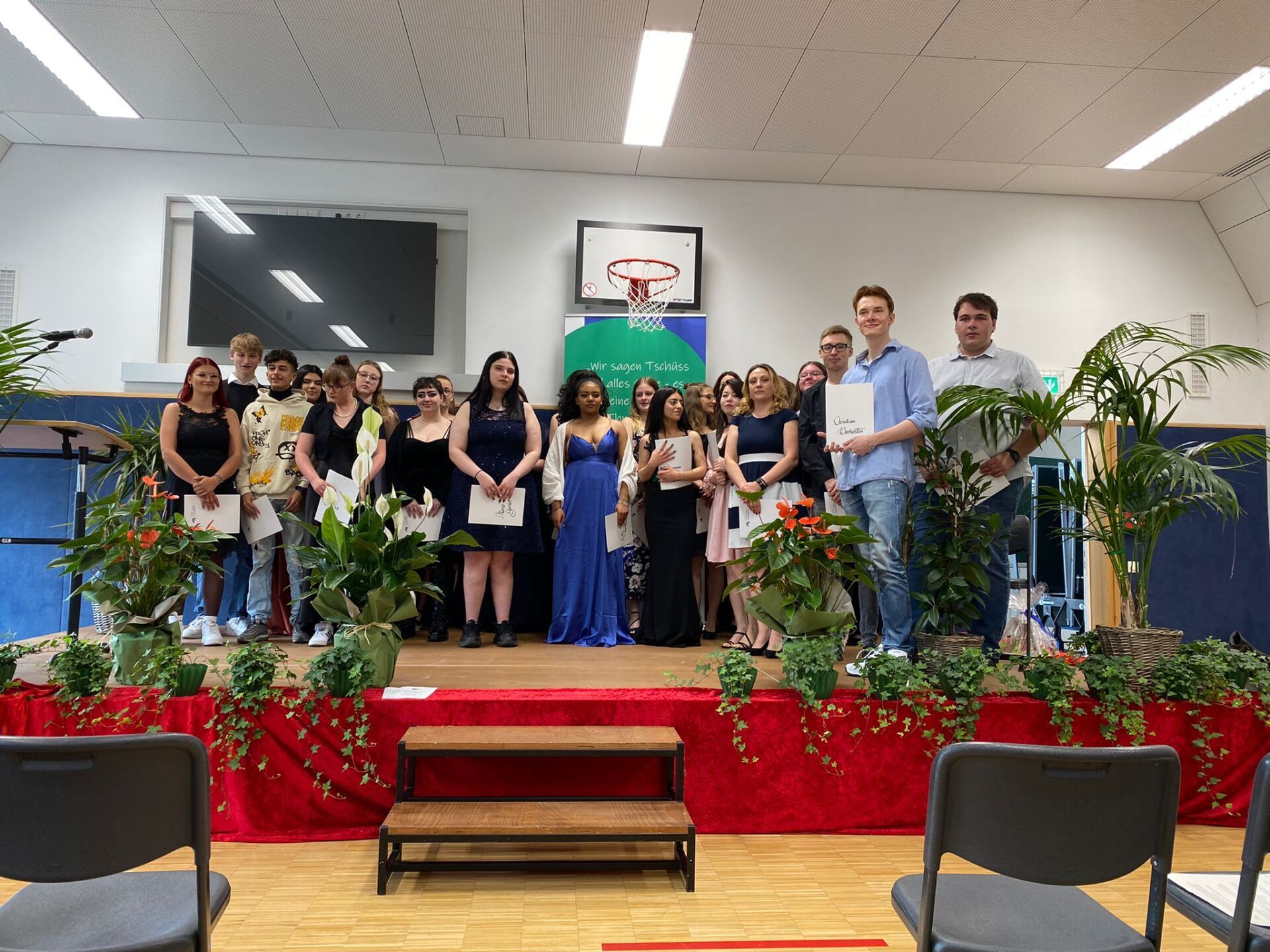 Die Klassensprecherinnen beider Klassen blickten in ihrer Rede auf die Höhen und Tiefen zurück, die sie in den letzten beiden Jahren erlebt haben. Auch diese Ausbildungen waren geprägt von zwei Jahren Pandemie, die nicht an allen spurlos vorüberging. Trotzdem blieben viele positive Erlebnisse in Erinnerung, z.B. das Wandern für die Opfer der Flutkatastrophe mit Herrn Rütter oder die Kulturnacht mit Herrn Laing. Beide Klassensprecherinnen dankten allen Lehrern, aber auch ihren Klassenkameraden für die Unterstützung während der gemeinsamen Zeit.