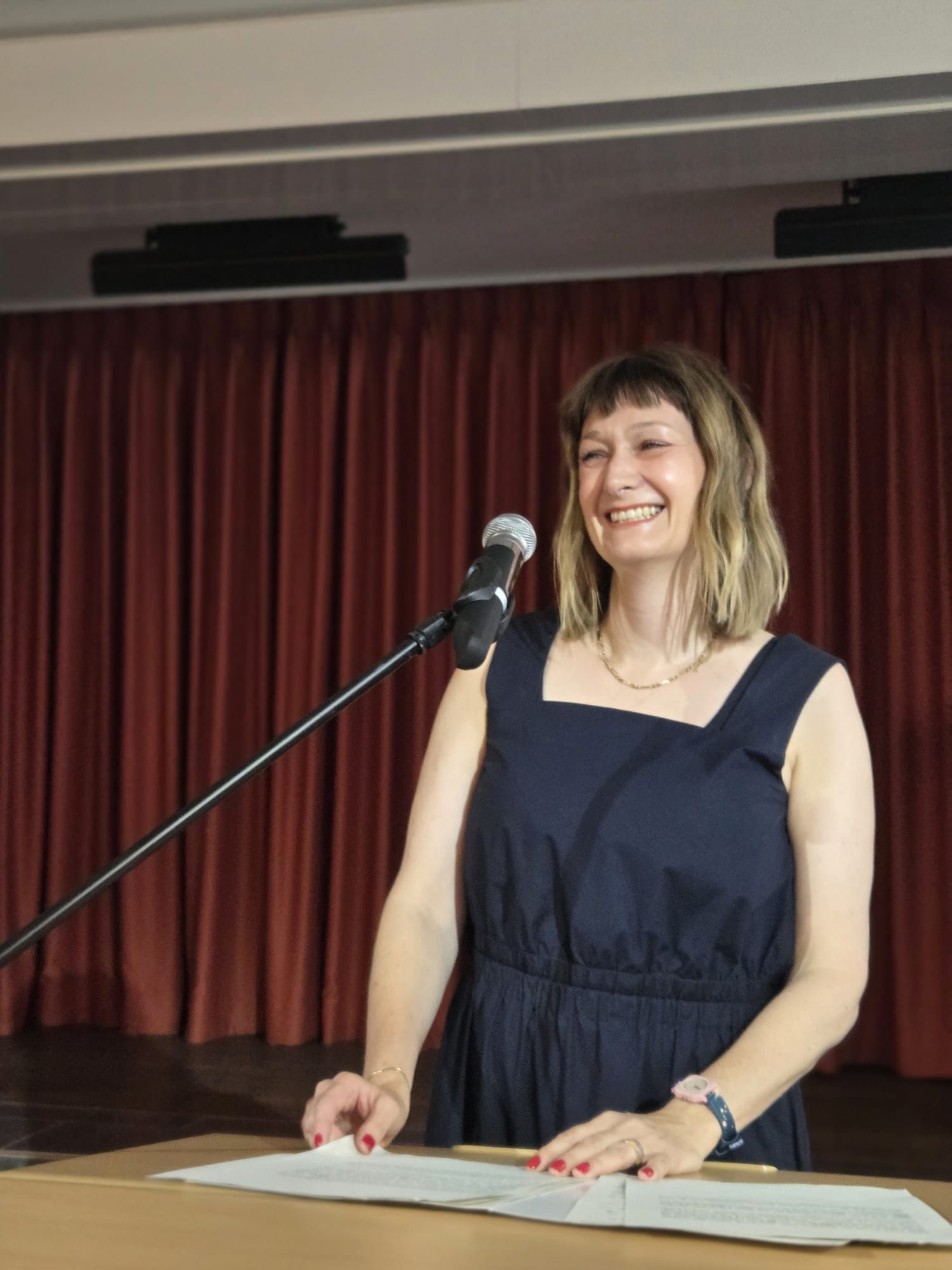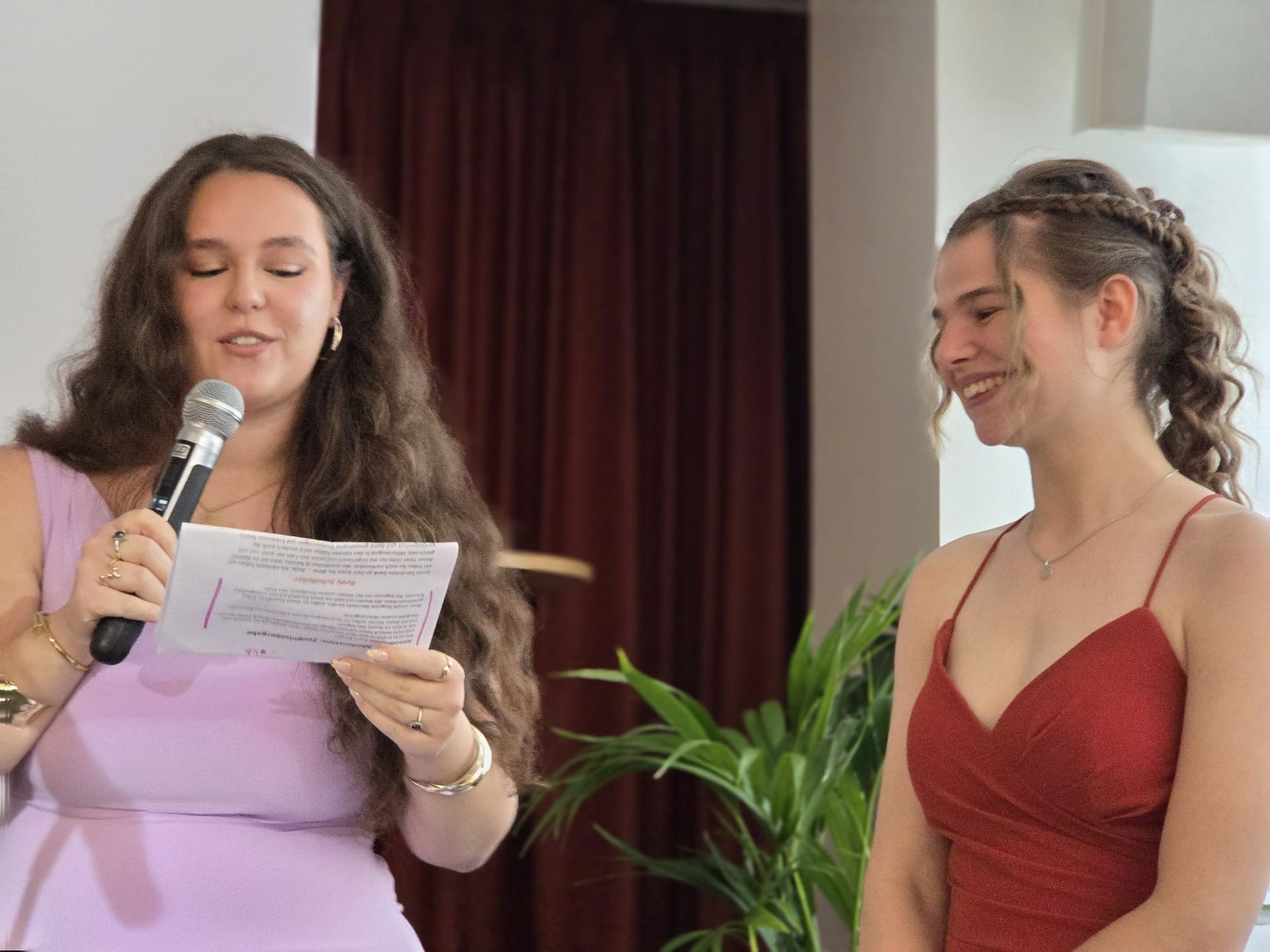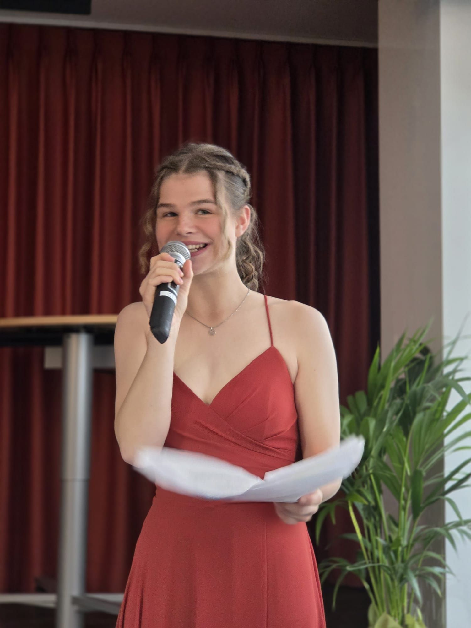 Ein Zusammenschnitt aus Fotos und Videos erinnerte daran, dass neben dem Unterricht auch das Miteinander, der Humor und gemeinsame Erlebnisse ihren festen Platz im Schulalltag hatten. Für Heiterkeit und Rührung sorgte der Rückblick von Milla und Duresa auf drei ereignisreiche Schuljahre. Mit ehrlicher Dankbarkeit erinnerten sie an prägende Momente und bedankten sich im Namen der gesamten Klasse bei den Lehrkräften.