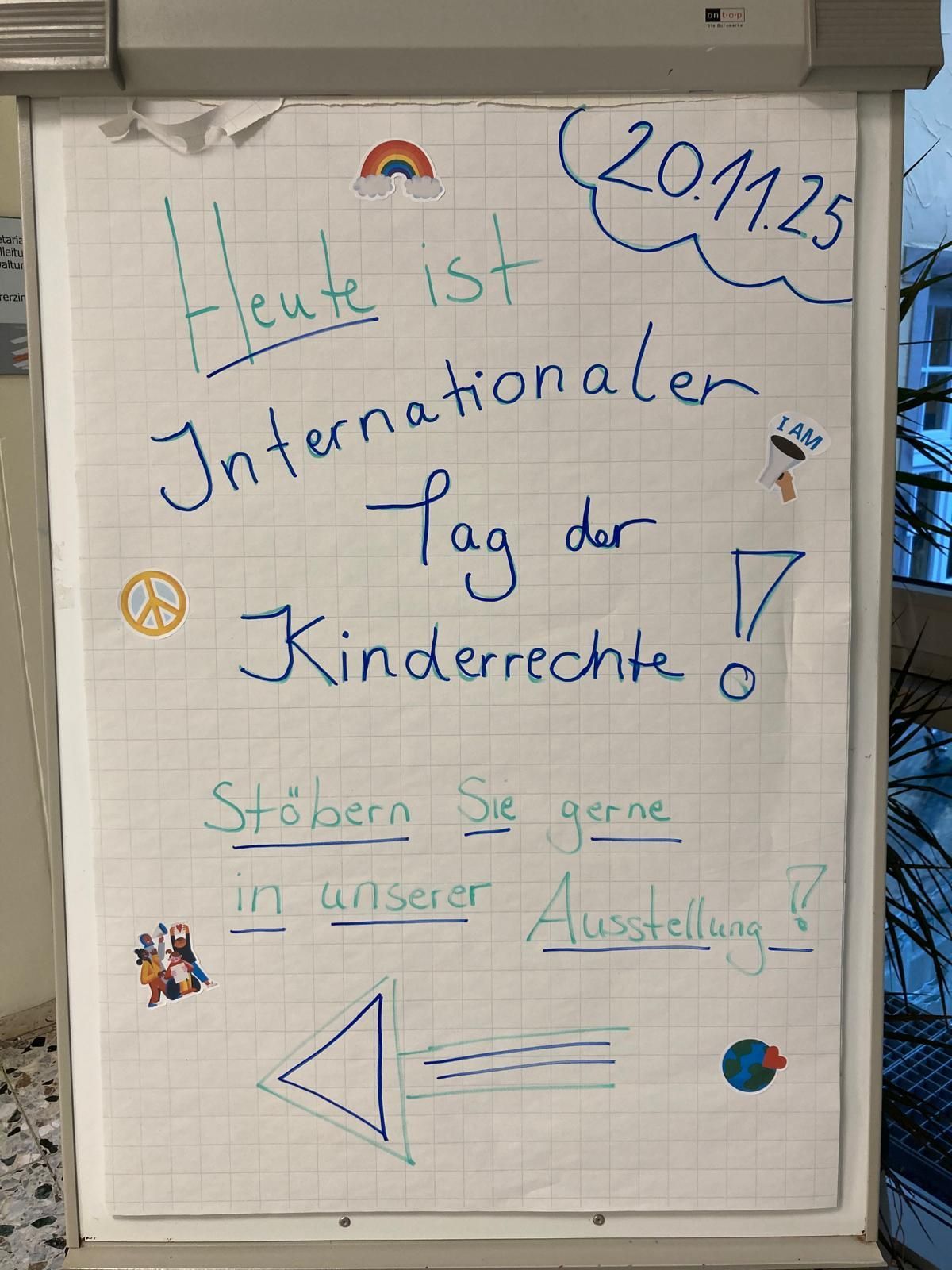Zum internationalen Tag der Kinderrechte am 20. November 2025 gab es in der Liebfrauenschule Coesfeld in diesem Jahr eine besondere Aktion: Auf der ersten Etage wurde eine kleine Ausstellung aufgebaut, die das Thema Kinderrechte sichtbar machte. Frau Kahn und Frau Fischer haben im Vorfeld Materialien ausgewählt, die sowohl informieren als auch zum Dialog einladen. Die Ausstellung zeigt unter anderem Poster, Bilderbücher und Kamishibai-Geschichten, Materialien zum Einsatz in der Kita, Schule und Jugendbildung. Viele Schülerinnen und Schüler nutzten die Zeit in den Pausen, um in den Materialien zu stöbern. Ziel der Präsentation ist es, das Bewusstsein für die Rechte von Kindern zu schärfen und die Schulgemeinschaft daran zu erinnern, wie wichtig Respekt, Schutz und Beteiligung für junge Menschen sind. Die Ausstellung ist für alle Interessierten bis Montag aufgebaut.