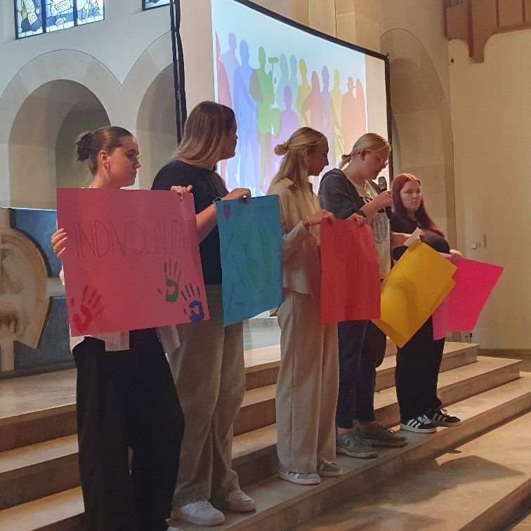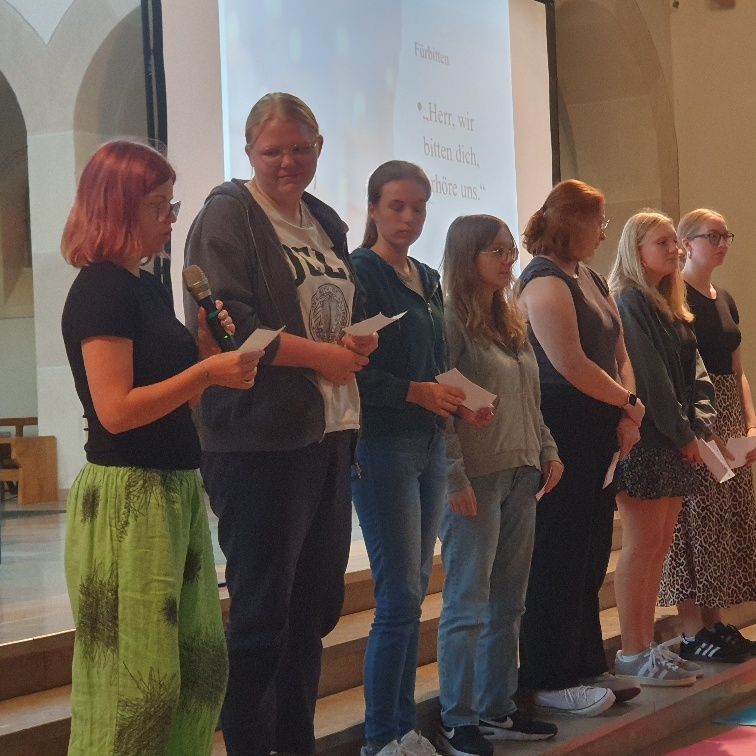 Am 23.09.2025 feierten wir den Schuljahreseröffnungsgottesdienst inter dem Motto „Connected – verbunden mit Gott und miteinander" in der Jakobikirche. Der Gottesdienst wurde geleitet von Philipp Lammering, Pastoralreferent der Gemeinde, der den Gottesdienst sehr individuell gestaltet hat. Das Schulseelsorgeteam hatte den Gottesdienst zusammen mit der HEP BUb vorbereitet. Mit dem Schuljahresanfang steht die gesamte Schulgemeinde wieder an einem aufregenden Neuanfang. Ein Neustart an dieser Schule bietet wieder neue Chancen, neue mögliche Wege, neue Begegnungen und neue Verbindungen einzugehen. Das Thema des Gottesdienstes hieß „Connected – verbunden mit Gott und miteinander“. „Connected“ – das ist ein Wort, das wir wahrscheinlich jeden Tag benutzen, ohne es großartig zu hinterfragen. Wenn das WLAN nicht connected, wird es schwierig. Wenn WhatsApp nicht lädt, fühlt es sich fast so an, als würde die Welt stillstehen. Wir merken: Verbunden zu sein, ist für uns heute selbstverständlich. Im Gottesdienst sollte es um genau diese selbstverständliche Connection gehen – allerdings nicht um die Connection der Handys, sondern um die Connection mit den Menschen um uns herum, um analoge, authentische, echte Verbindungen.