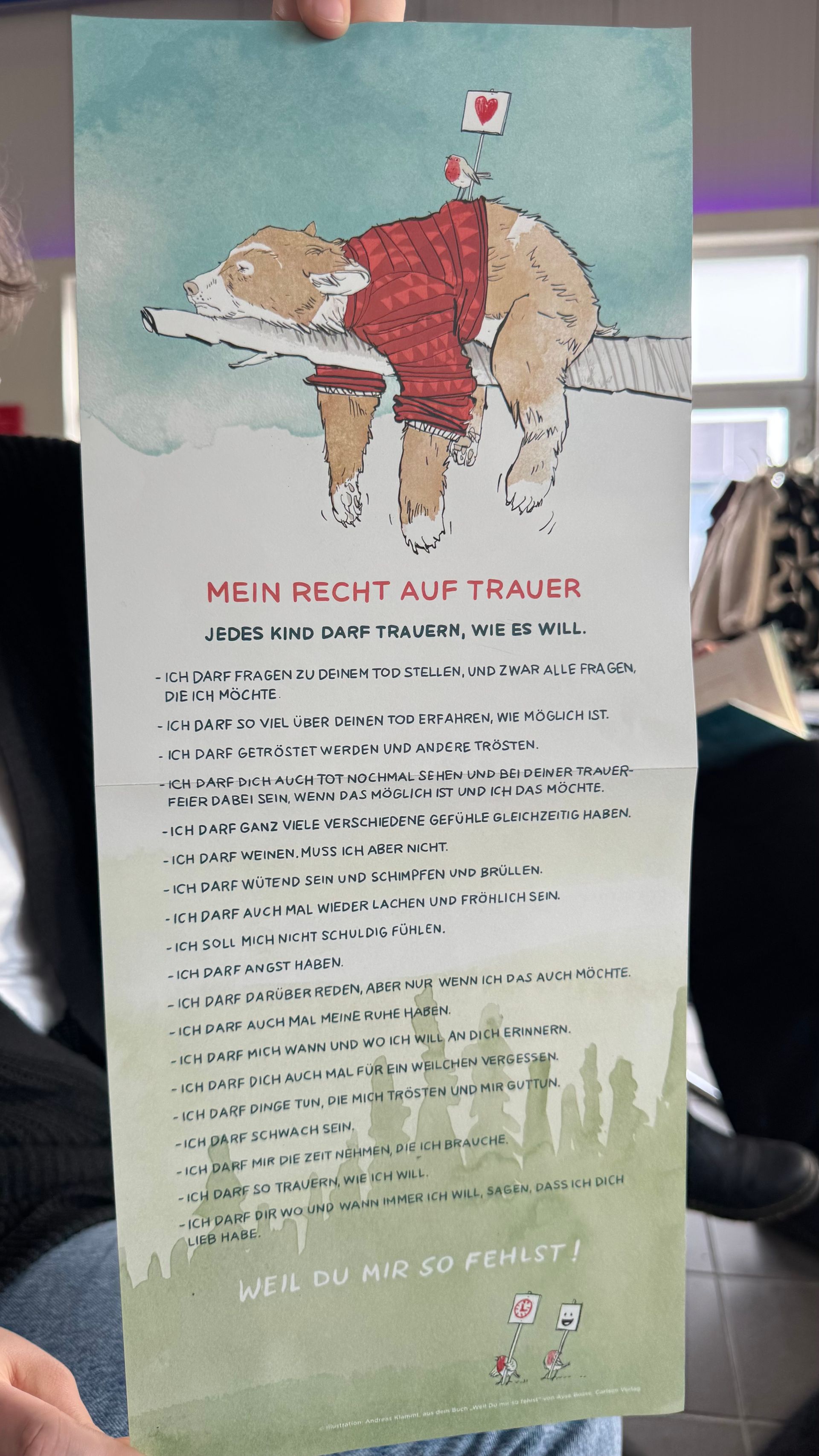 Am Montag, 02.02.2026vmachte sich der BP-Kurs der HEP von Frau Meis Kunze auf den Weg in die „Mutmachwerkstatt“ nach Heek. Dort berichtete Gisa Sendfeld von ihrer Arbeit als Trauerbegleiterin und ihrem Herzensprojekt der „Mutmachwerkstatt“, in der trauernde Menschen Raum finden, ihrer Trauer zu begegnen. Der Fokus lag insbesondere auf sterbende und/oder trauernde Kinder, die Gisa Sandfeld in ihrer „Mutmachwerkstatt“ auch betreut. Insgesamt ein sehr eindrücklicher Tag mit vielen neuen Erfahrungen.