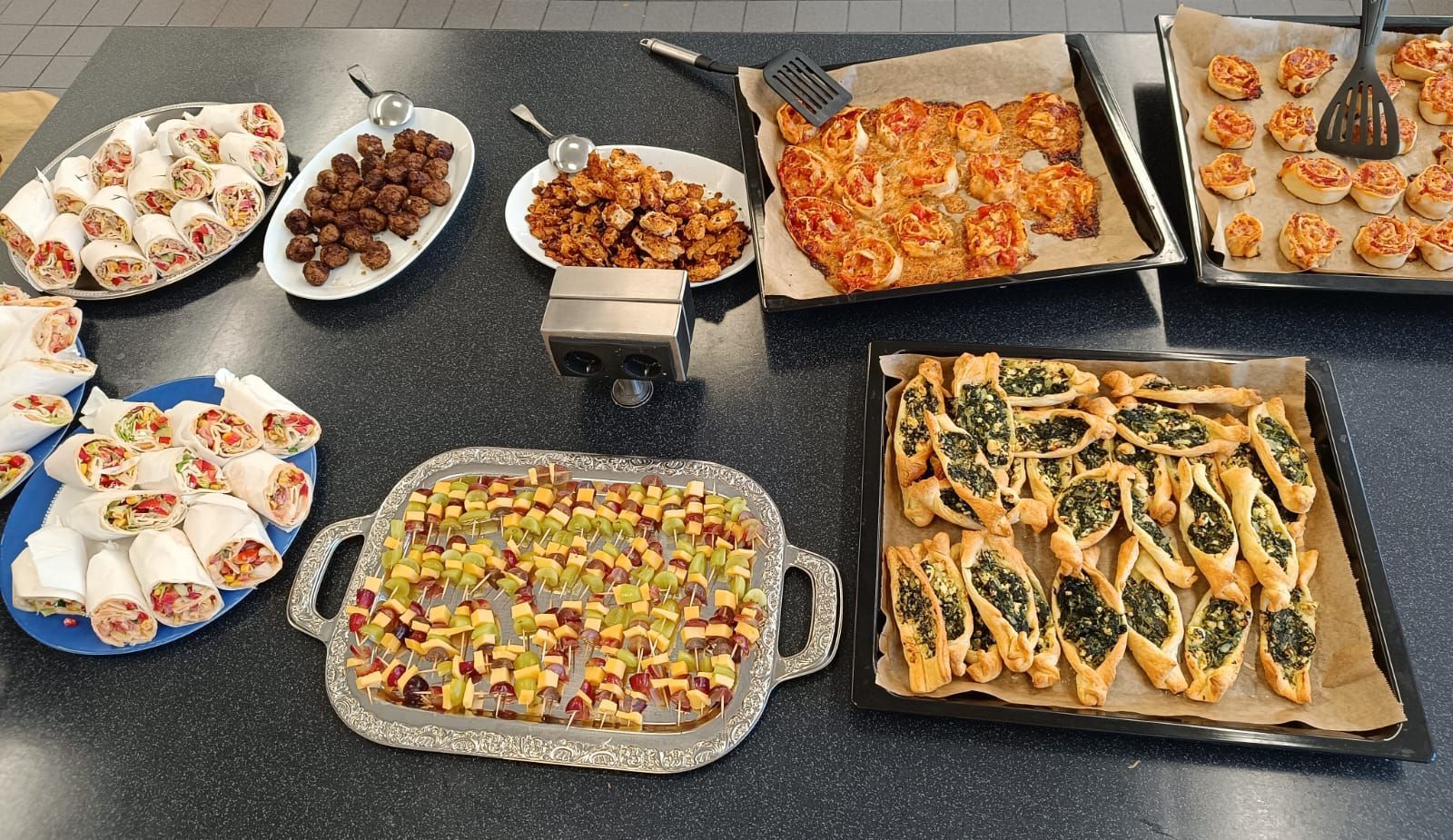 Im Rahmen der Motto-Woche haben Schüler:innen der KiO ein Fingerfood-Buffet mit "Couchfeeling", passend zum Thema "Pyjama-Tag", zubetreitet. Sehr gelungen und sehr lecker!