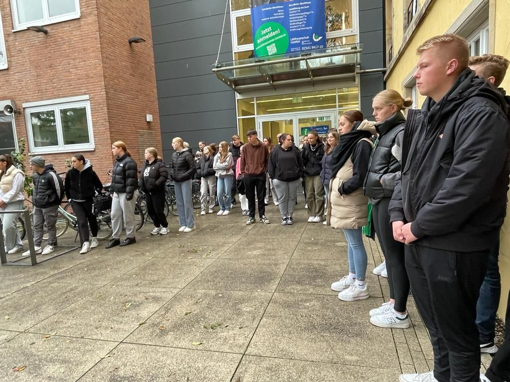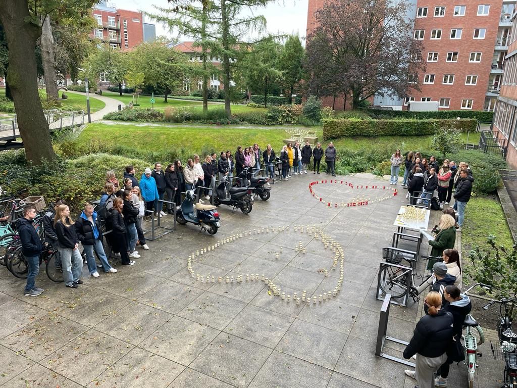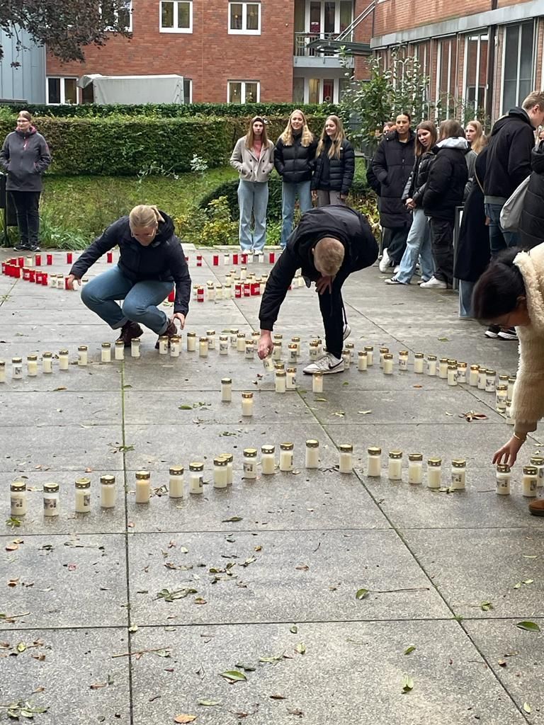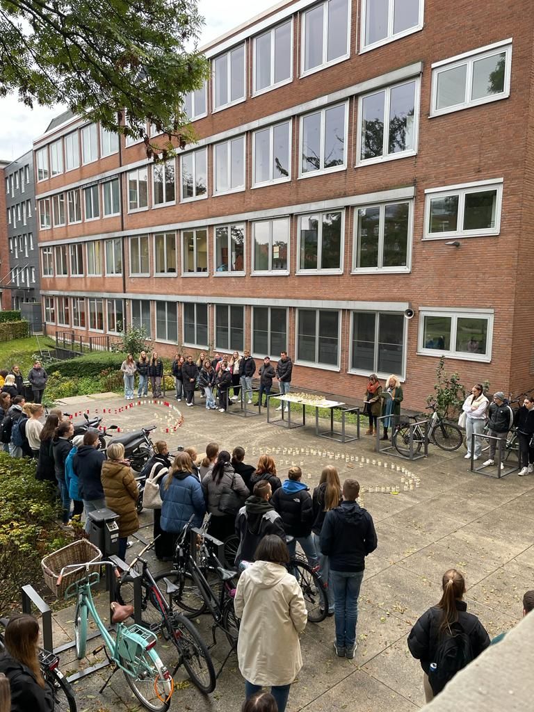Das Seelsorgeteam der Liebfrauenschule lud am Donnerstag, 19.10.2023 zu einem Friedensgebet in den Innenhof ein. Anlass war der Ausbruch der kriegerischen Auseinandersetzung in Israel und Gaza. Damit wollten sie ein Zeichen der Verbundenheit der gesamten Schulgemeinde setzen.