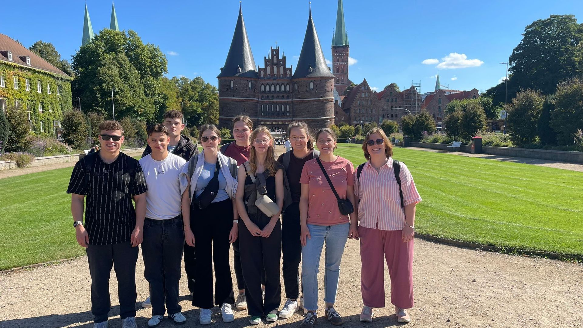 Die vergangene Woche (08.09.-12.09.25) verbrachte die HEPS BP mit Frau Ademmer und Frau Kiepe in einem Selbstversorgerhaus am Stocksee in Schleswig-Holstein südwestlich vom Plöner See.                    Bei traumhaftem Wetter begann unsere Reise in Lübeck und wir bewunderten die schöne Stadt vom Wasser bei einer Trave-Rundfahrt sowie von oben vom Kirchturm der Petri-Kirche aus. Es folgte eine erste Foto-Challenge, die die Gruppe bewältigen musste. Danach ging es mit dem Reisebus mitten in die Natur zu unserer Unterkunft zum Stocksee.                    Am zweiten Tag begaben wir uns auf große Wanderung rund um den Stocksee direkt vor unserer Unterkunft. Dabei kam es darauf an, dass alle gemeinsam am Ziel ankamen und keiner zurückbleiben sollte. Mit Pausen und gemeinsamen Absprachen zu alternativen Wanderstrecken gelang dies der HEPS BP sehr erfolgreich. Einige wuchsen dabei sogar über sich hinaus.                    Ein besonderes Highlight war darüber hinaus der dritte Tag: Mit dem Reisebus ging es nach Hamburg zum Alsterdorf, eine Einrichtung für Menschen mit Beeinträchtigung. Besonders beeindruckt waren die Studierenden von den vielfältigen Angeboten des Dorfes, in dem an vielen Stellen echte Inklusion deutlich wurde. Auf der anderen Seite ließen uns die Gedenkorte der Opfer der NS-Euthanasie für Minuten verstummen.                    Anschließend folgte eine Stadtführung durch Uwe, ein ehemaliger Obdachloser, der für das Hamburger Obdachlosenmagazin Hinz und Kunzt seit vielen Jahren arbeitet. Uwe kennt das Leben auf der Straße aus eigener Erfahrung sowie die Anlaufstellen, Schlafplätze und Gefahren in der Innenstadt. Der circa zweistündige Rundgang führte uns vorbei an Orten, die in keinem Reiseführer erwähnt werden: Wohnheim statt Hotel Atlantik, Tagesaufenthaltsstätte statt Alsterpavillon, Drogenberatungsstelle statt Passagenbummel.                              Am vierten Tag wurde es wieder sportlich. Mit unseren Leihrädern fuhren wir durch die wunderschöne Holsteinische Schweiz nach Plön und wieder zurück (insgesamt ca. 30 km). Auch hier bewies die Gruppe Zusammenhalt und Durchhaltevermögen. Sogar eine Fahrradpanne (Kette abgesprungen) konnte uns nicht aufhalten.                              Der letzte Tag, erneut in Lübeck, hielt eine besondere Überraschung für die Studierenden bereit: Frau Ademmer und Frau Kiepe überraschten die HEPS BP mit einem Do-it-yourself-Workshop im Marzipan-Traditionshaus Niederegger.                              In den abendlichen Reflexionen waren allerdings sich alle einig: Die schönste Erfahrung war unsere Gemeinschaft. Ob bei sportlichen Herausforderungen, beim gemeinsamen Kochen und Grillen, beim gemeinsamen Aufräumen und Spülen, beim gemeinsamen Spielen von Hitster (besonders gern gegen die Lehrinnen😊), Stadt-Land-Vollpfosten, Spikeball oder dem Kartenspiel Wizard, wir waren eine wirklich eine Gemeinschaft! Und was für eine!                    Ein riesengroßes Dankeschön geht an alle Studierenden der HEPS BP!