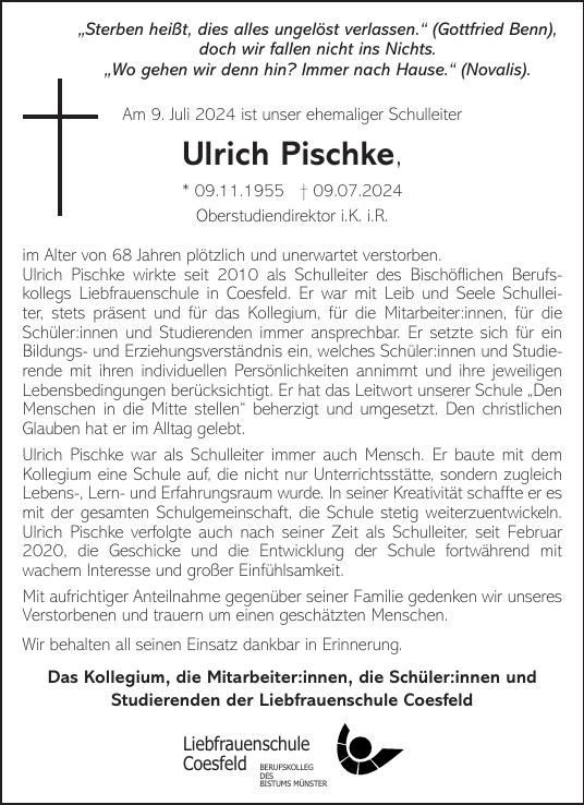 Nachruf für unseren ehemaligen Schulleiter Ulrich Pischke