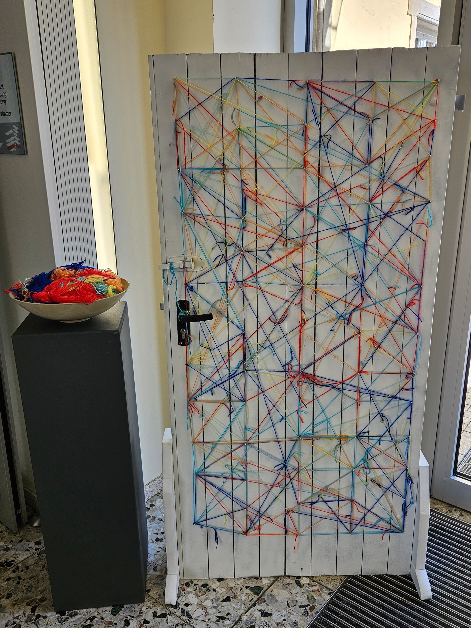 Der zweite Teil der Wette, nämlich die Schulleitung in ein Arbeiterdenkmal zu verwandeln, wurde dann auch direkt in Angriff genommen: der Schulleiter, Herr Plaßmann und Herr Borgert als Teil der erweiterten Schulleitung wurden im Innenhof in Toilettenpapier und Alufolie eingewickelt und in Gärtner verwandelt. Damit war auch der zweite Teil der Wette gewonnen und die Freude war verständlicherweise groß. Aber Frau Grünhagen wollte die Schulleitung nicht so einfach aus ihrem Denkmal befreien, so dass diese zur Freude aller anwesenden Schüler*innen den Unterricht für diesen Tag um 12:30 Uhr als beendet erklärte. Im Anschluss feierten Lehrer*innen, Schüler*innen und die Bewohner*innen und Mitarbeiter*innen der Marienburg noch ausgelassen im Foyer und im Innenhof der Liebfrauenschule.