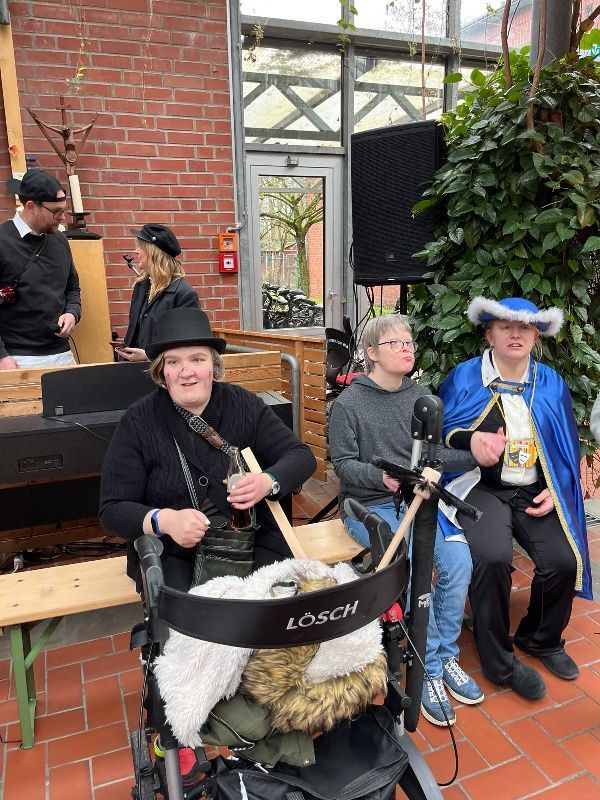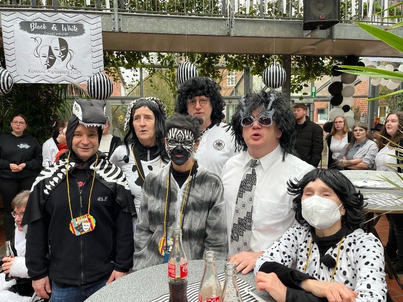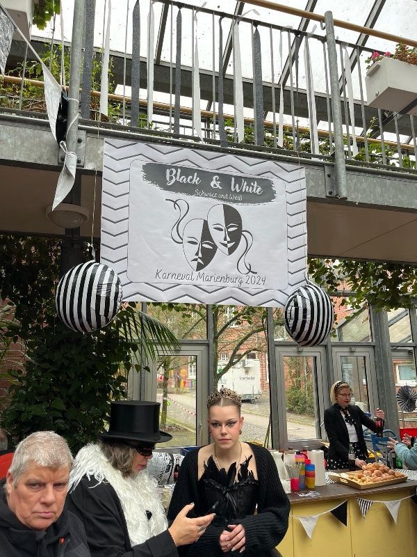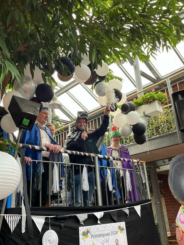 An Altweiber waren wir dann auf 10.00 Uhr in die Marienburg eingeladen, um stellvertretend für die ganze Liebfrauenschule die Wette zu bestreiten. Im prächtig geschmückten Glashaus erwarteten uns die Närrinnen und Narren der Marienburg in ihren phantastischen Kostümen, um uns auf die Probe zu stellen.