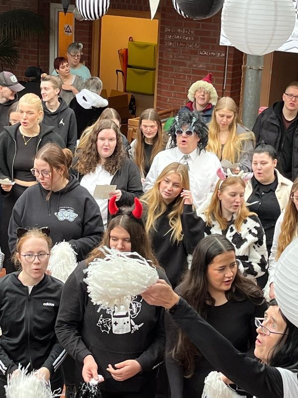 Die Schüler:inen und Lehrer:innen waren also textlich, musikalisch und tänzerisch gefordert …