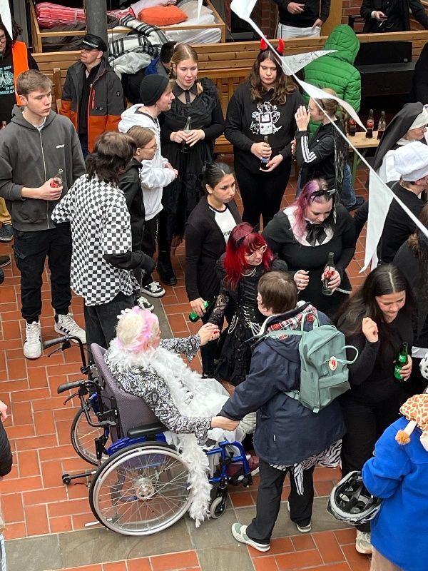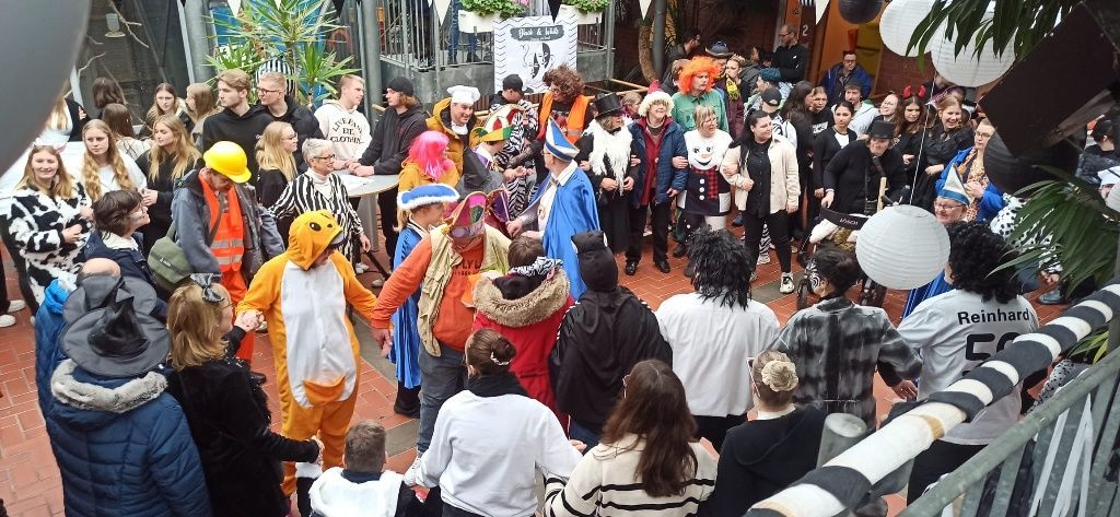 Am Altweiber-Donnerstag, dem 08.02.2024, war es wieder so weit. Die Liebfrauenschule, genauer die Klassen HEP BM a, HEP B Mb und Sz O machten sich mit ihren Lehrerinnen und Lehrern (Fr. Lichte, Fr. Schleuter, Hr. Pischke, Hr. Kemper und Hr. Knoke) auf den Weg, um sich der traditionsreichen Karnevalswette zu stellen, die es in sich hatte …