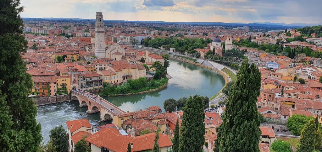 In Verona besichtigten wir gemeinsam die Arena, das Stadtzentrum mit seinen vielen historischen Sehenswürdigkeiten, gingen alle zusammen Pizza essen in einer ehemaligen Kirche und krönten den Tag mit einem fantastischen Ausblick von der Kirche San Pietro direkt an der Etsch über Verona.