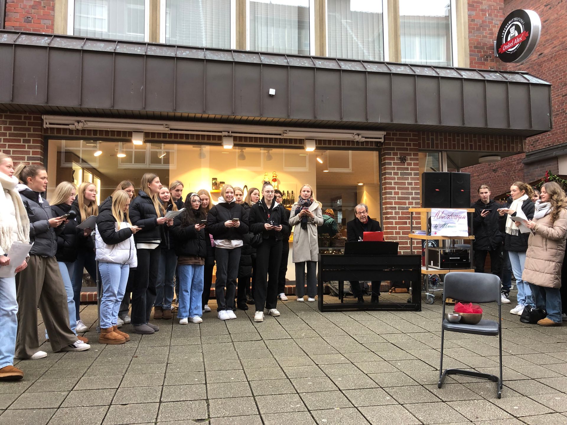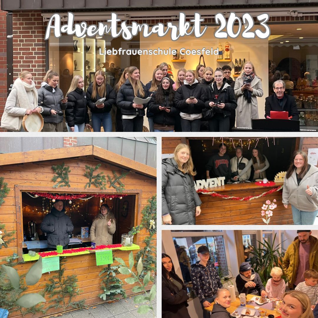 Am Samstag, 10.12.2023 engagierten sich die AHE 11a/b, AHE 13, FOS 12 und SPSU im Rahmen eines selbst organisierten Adventsmarktes für den guten Zweck. Die AHE 11a/b sorgten zusammen mit Musiklehrer Christian Laing als Chor für eine musikalische Einstimmung in die Adventszeit. Die AHE 13 und FOS sorgten für das leibliche Wohl und die SPSU bot eine Kinderbetreuung an.