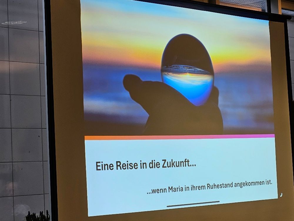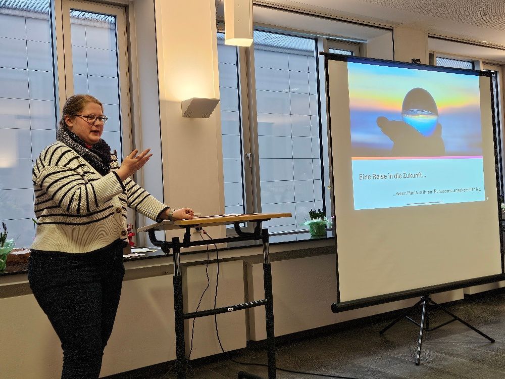 Abschließend hatte sich die Bildungsgangkonferenz Sozialpädagogik noch eine fiktive Reise in die Zukunft von Frau Sandhofe ausgedacht, die sie mit einem Blick in die Glaskugel erkannt hatten. Moderiert wurde dieser Beitrag von Frau Drüing.