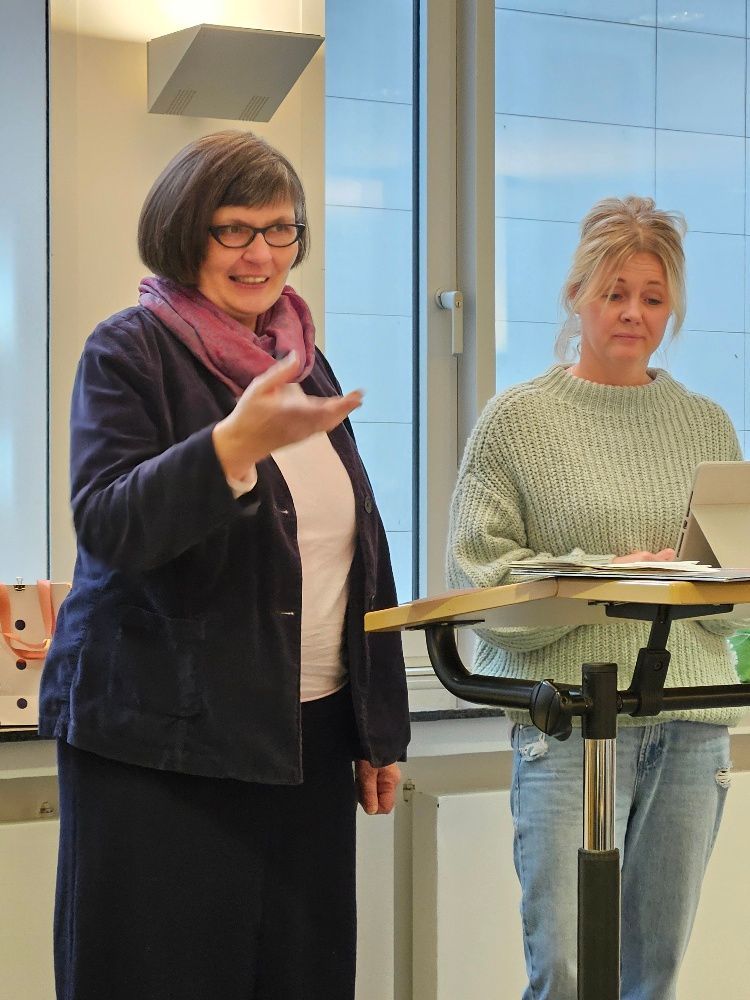 Frau Hojenski und Frau Reckers sprachen stellvertretend für die Bildungsgangkonferenz FOS/BFC und würdigten Frau Sandhofes jahrelang Arbeit als Klassenlehrerin in der FOS und der damaligen HBFS, ihr Wissen über die Grundlagen und Besonderheiten bei Praktika in diesen Bildungsgängen und auch ihr Engagement als stellvertretende Bildungsgangleitung. Neben diesen Tätigkeiten wird auch immer Frau Sandhofes Rolle als Genießerin und vor allem für Kaffee in Erinnerung bleiben....