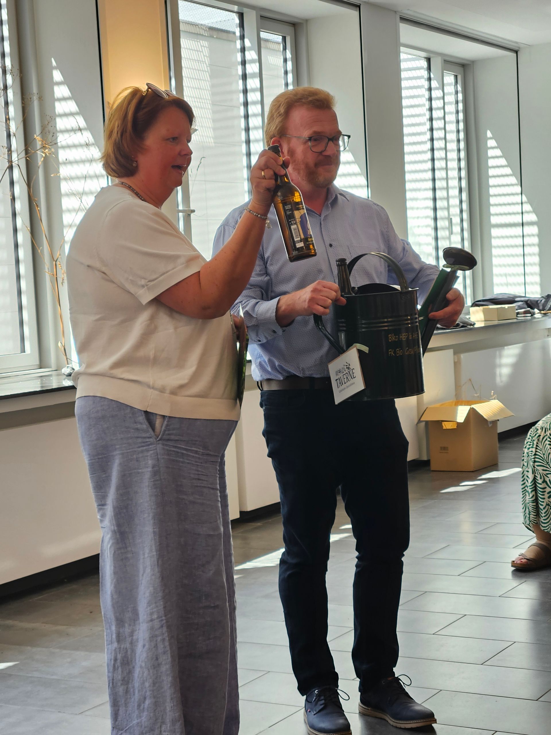 Die Bildungsgangkonferenzen AHE und HEP, sowie die Fachkonferenz Biologie hatten gemeinsam Abschiedsgeschenke mit einem persönlichen Bezug für Herrn Kemper organsiert, die dann stellvertretend von Frau Ademmer und Herrn Knocke überreicht wurden.