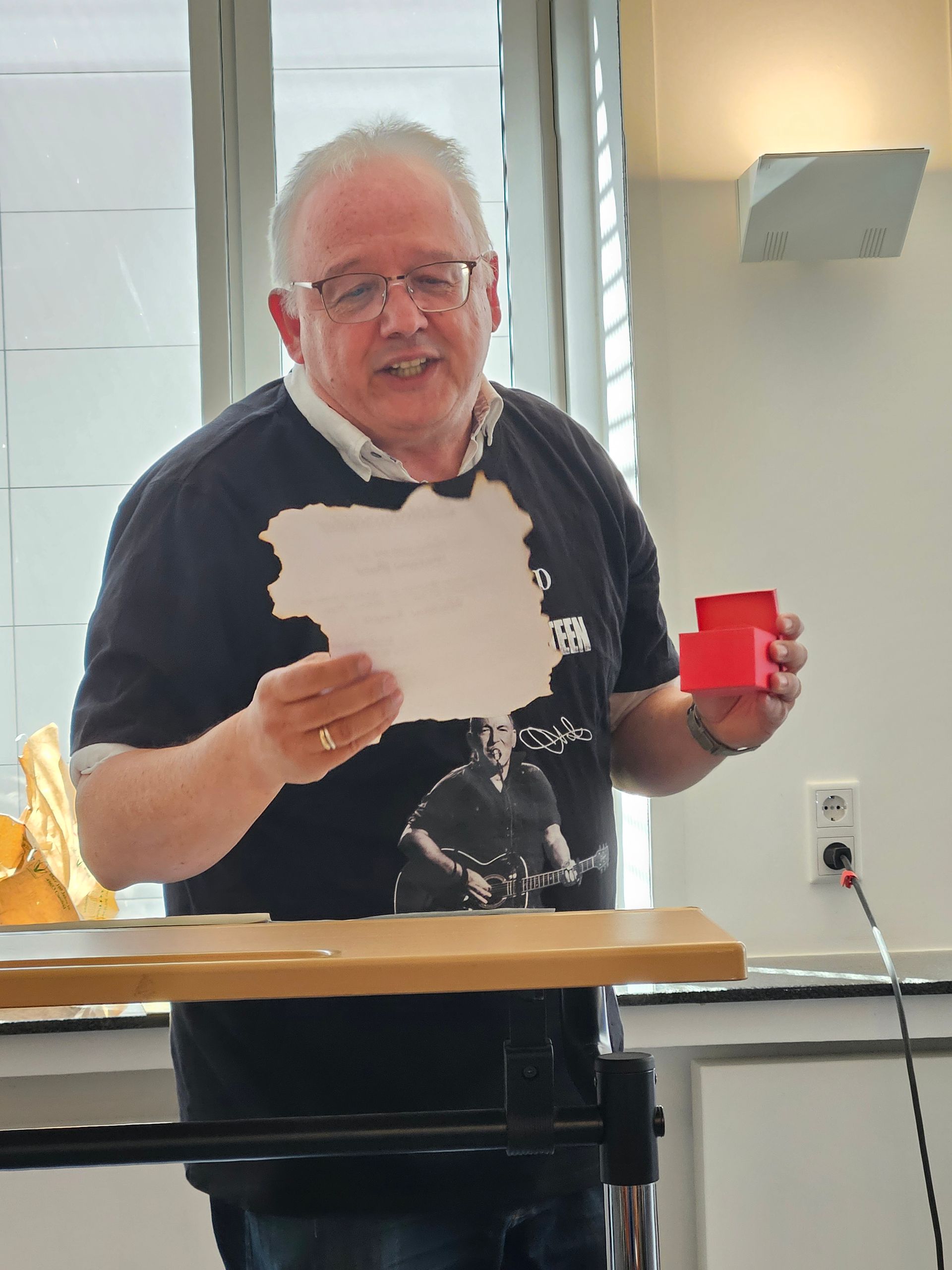 Herr Kotte, in seiner Funktion als Schulleiter, ging in seiner Rede auf die individuellen Merkmale der Kolleg:innen ein.