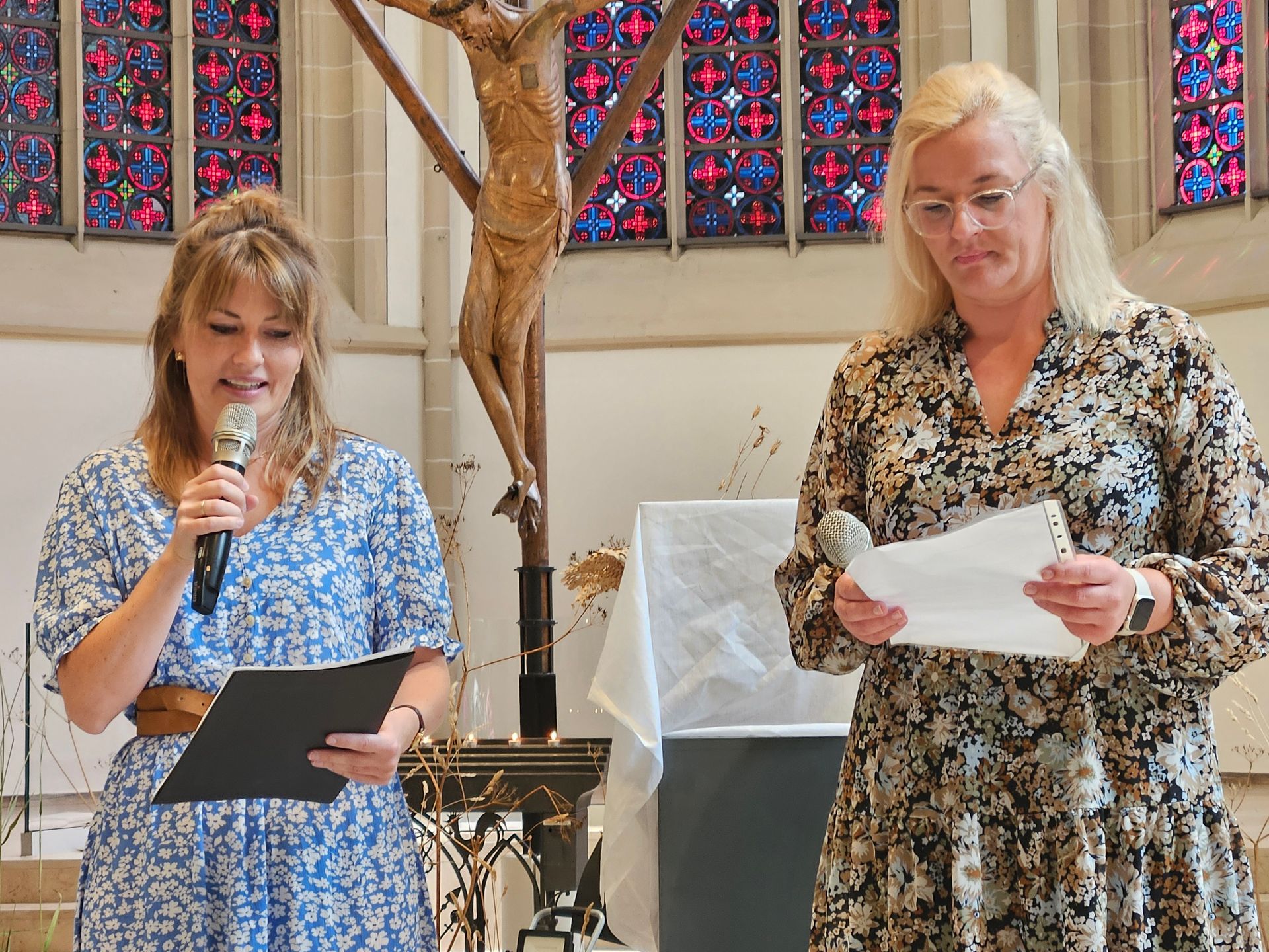 Frau Markmann und Frau Meis-Kunze vom Seelsorge-Team der Liebfrauenschule führten in das Motto des Impulses "Zwischen Aufbruch und Neubeginn" ein.