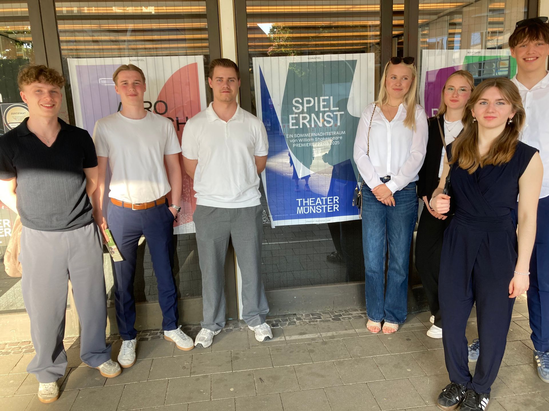 Der GK Deutsch der AHE 12 sah den „Sommernachtstraum“ von William Shakespeare im Theater Münster. Ein Drama, das im Unterricht zwischen zwei Buchdeckeln daherkommt, gehört auf die Bühne und entfaltet dort eine ganz andere Kraft. „Shakespeare so verpackt – das ist auch für Jugendliche etwas“, so eine Stimme aus dem Kurs.